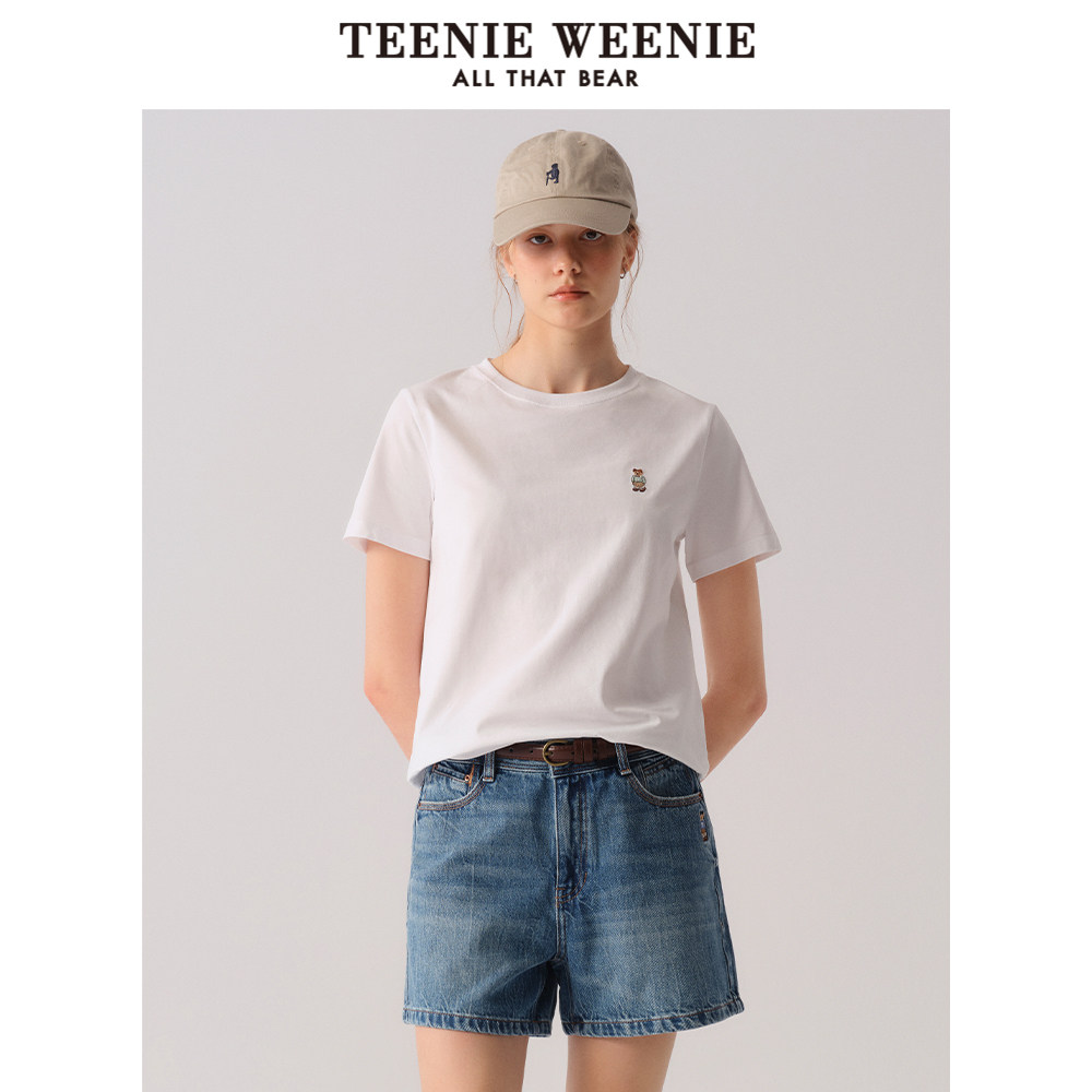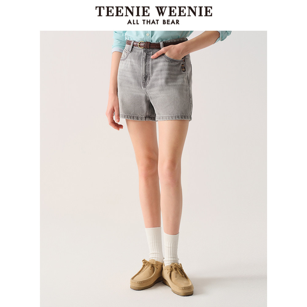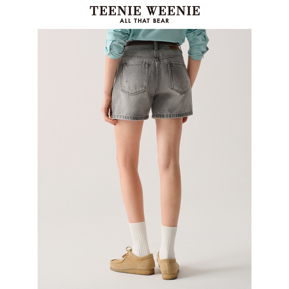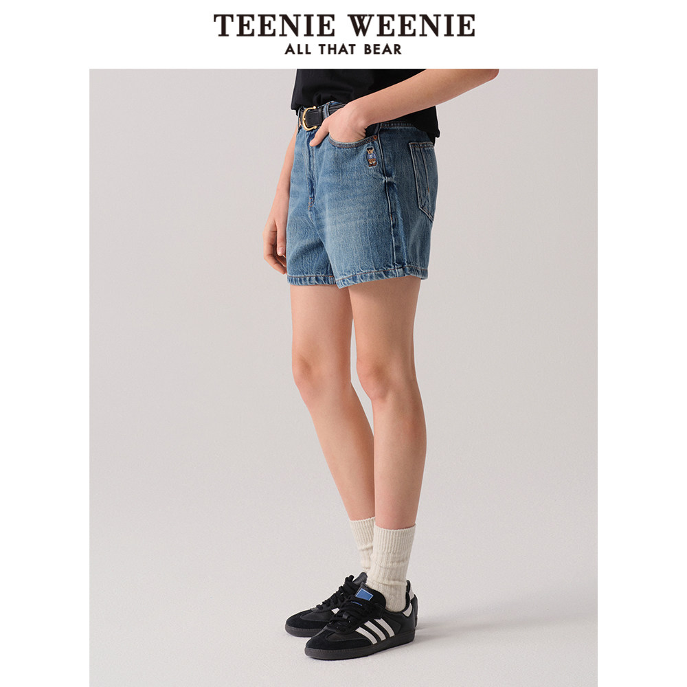 TeenieWeenie小熊奥莱女装2025春夏休闲活力复古水洗色牛仔短裤