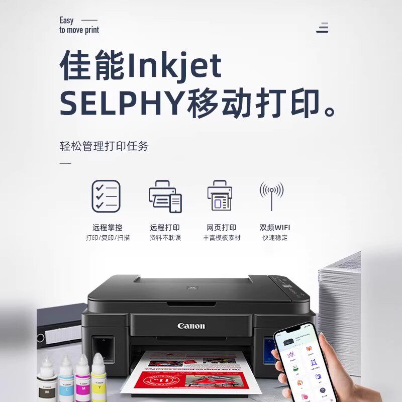 佳能墨仓式打印机无需更换墨盒手机直接打印