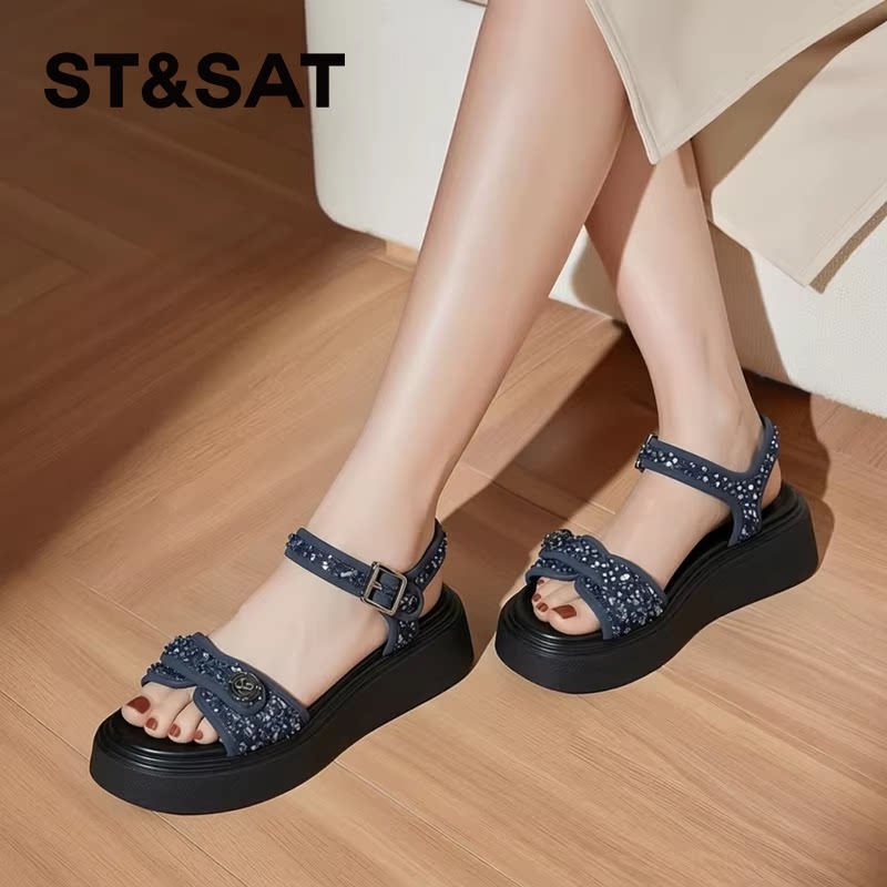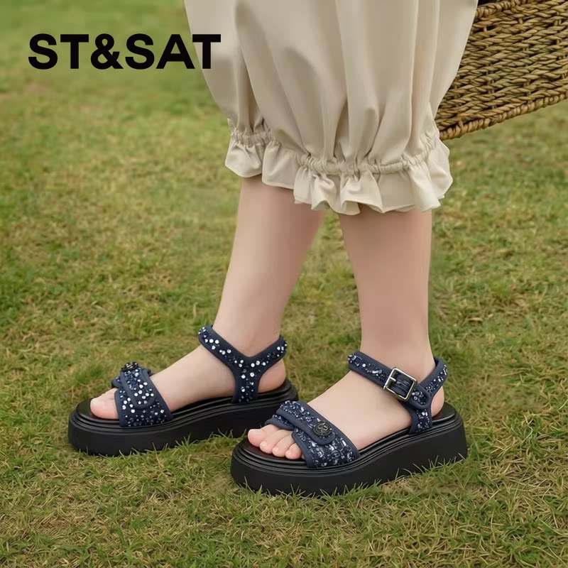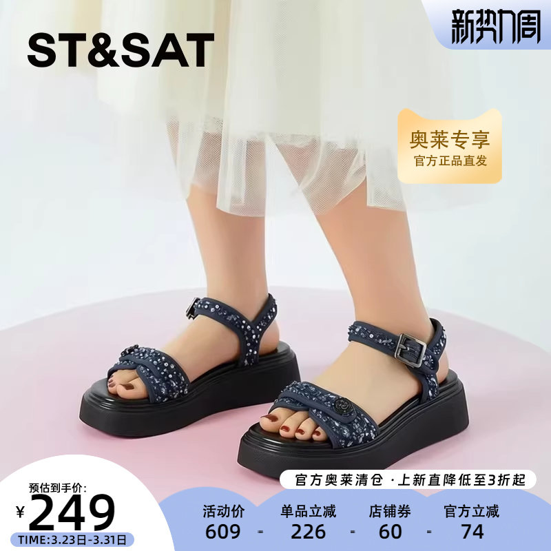 星期六女鞋子2023夏季新款小香风百搭运动休闲厚底凉鞋SS32115574