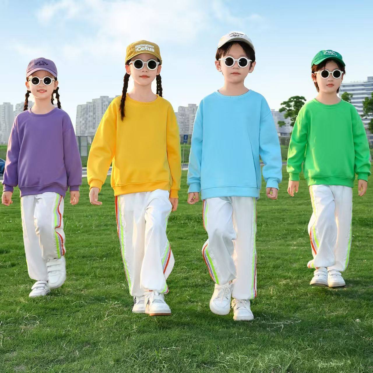 啦啦队演出服糖果色卫衣幼儿园舞蹈表演小学生秋季运动会多巴胺