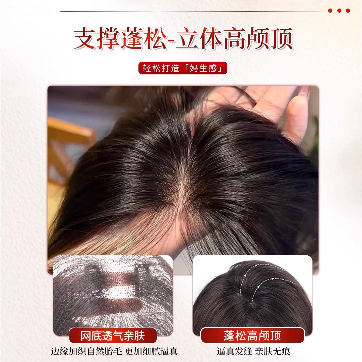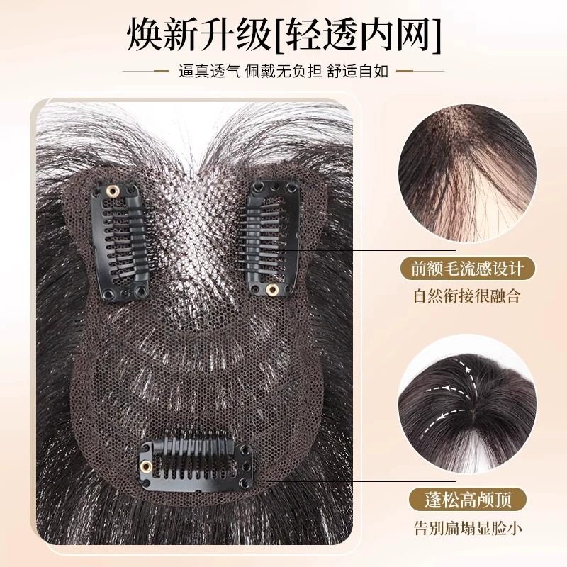 刘海假发女片头顶补发蓬松真发遮白发自然前额颅顶轻薄无痕增发量