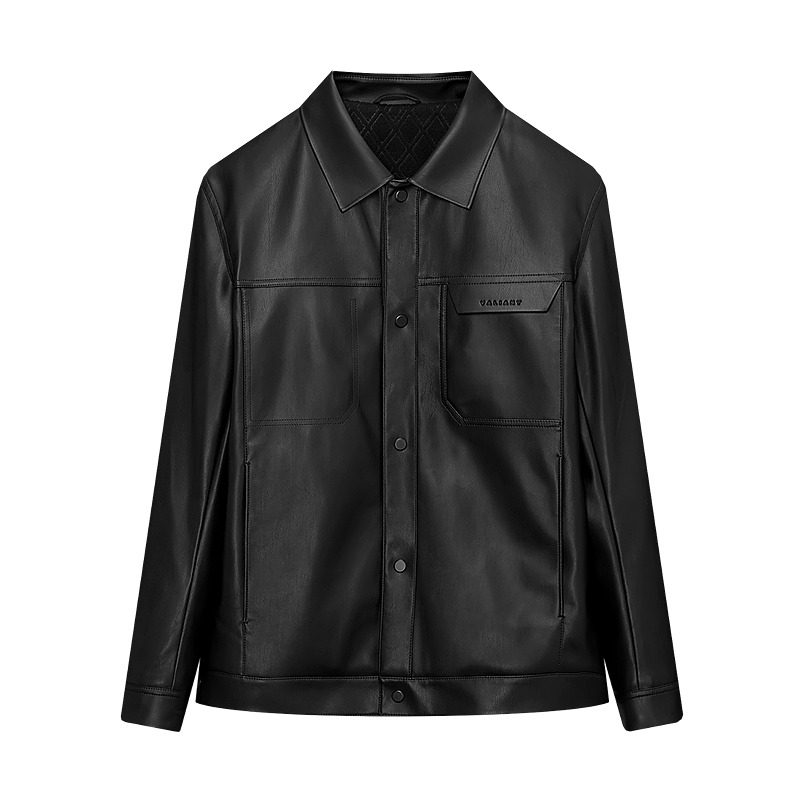 【绵羊皮】九牧王翻领皮衣外套男秋冬真皮修身商务立领皮夹克男装