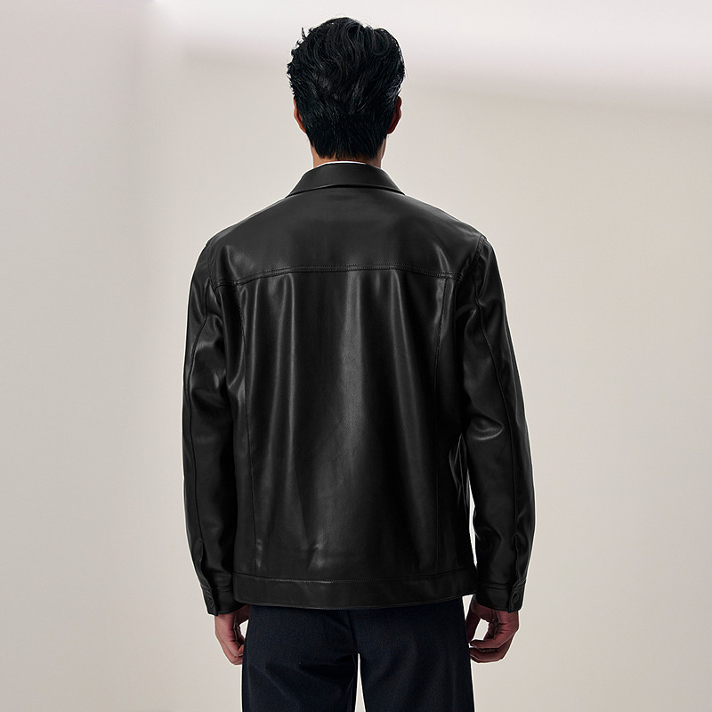 HLA/海澜之家皮夹克25秋冬新PU皮革质感纯色商务通勤潮皮衣外套男