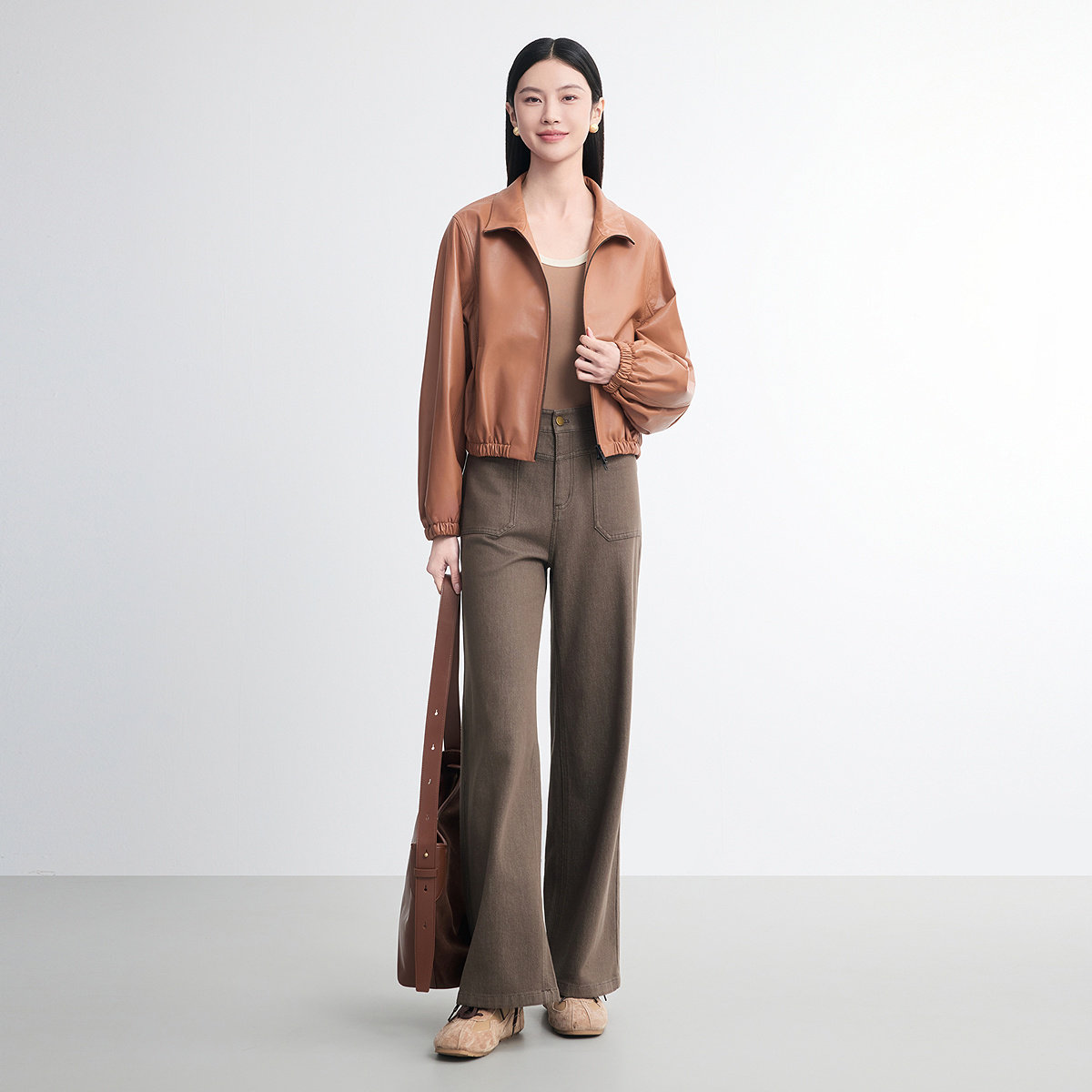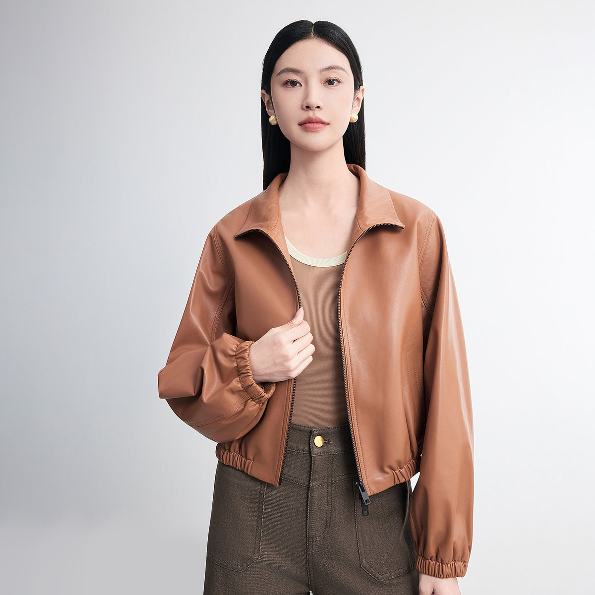 FINITY菲妮迪真皮皮衣2026春新款新款高端羊皮肌理感轻奢外套女装