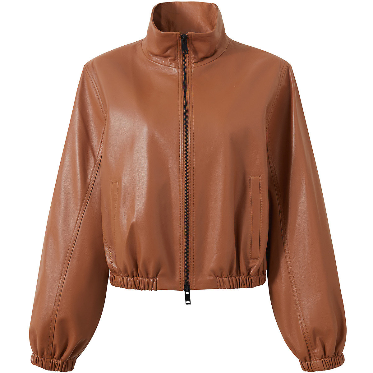 Eland衣恋皮衣女纯色带拉链长袖翻领外套2025冬季新款