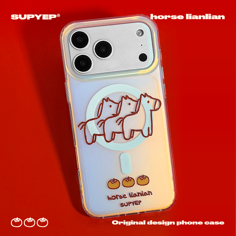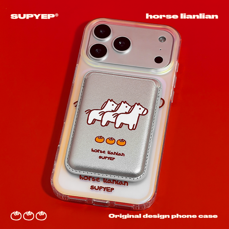 SUPYEP好事连连马年磁吸手机壳透明镭射磁吸卡包插卡照片简约小众适用iPhone17ProMax苹果16Pro15PM/华为P60p