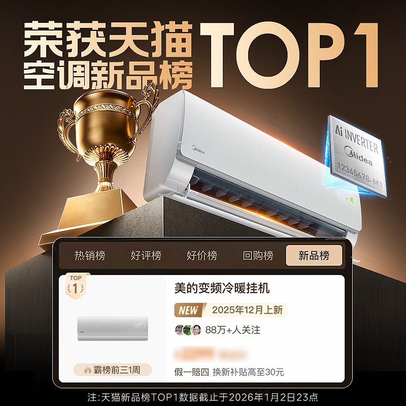 美的空调新一级能效家用大1.5匹2匹变频冷暖挂机2026款酷省电二代