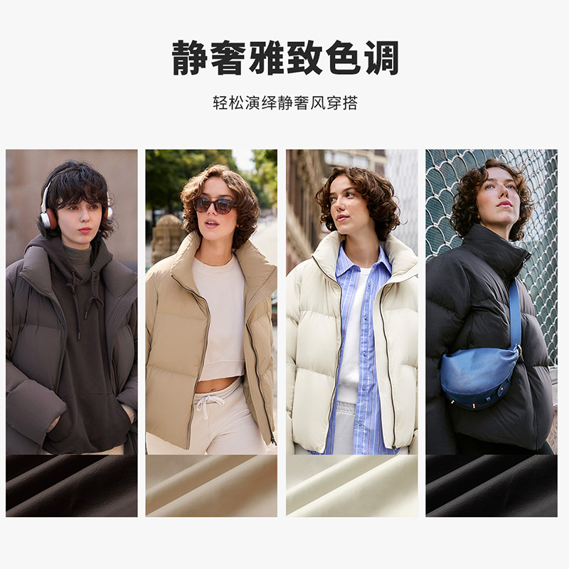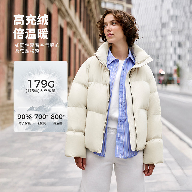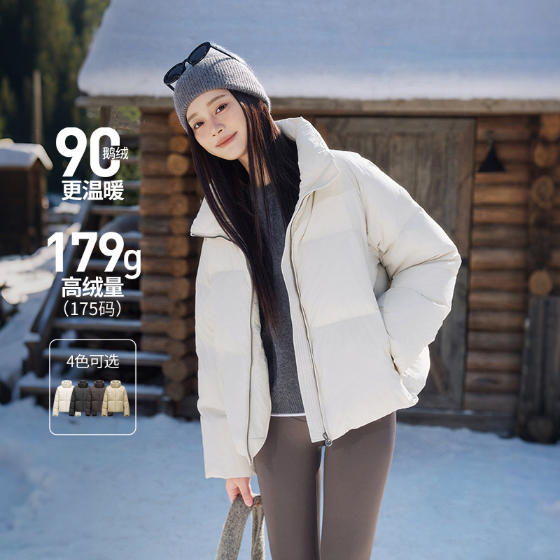 坦博尔鹅绒短款羽绒服立领面包服廓形高充绒量加厚保暖舒适女外套