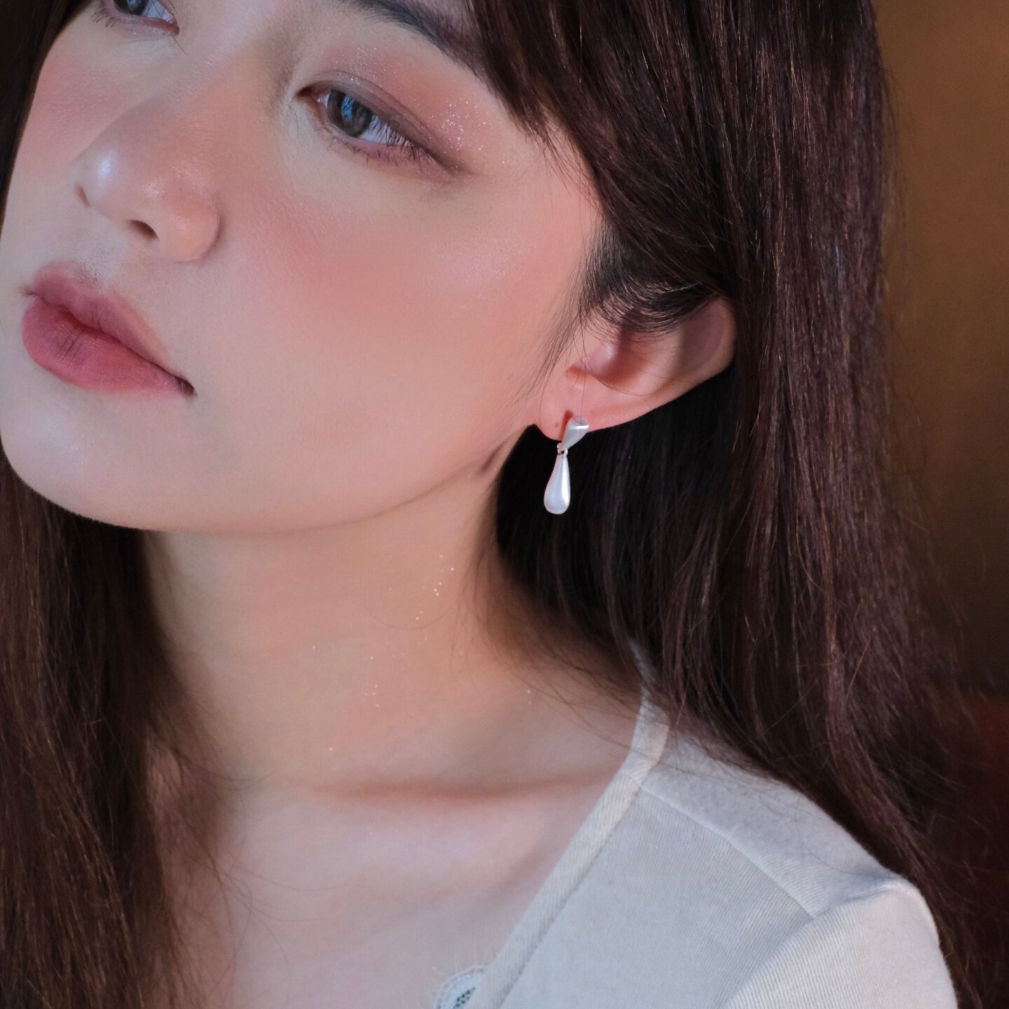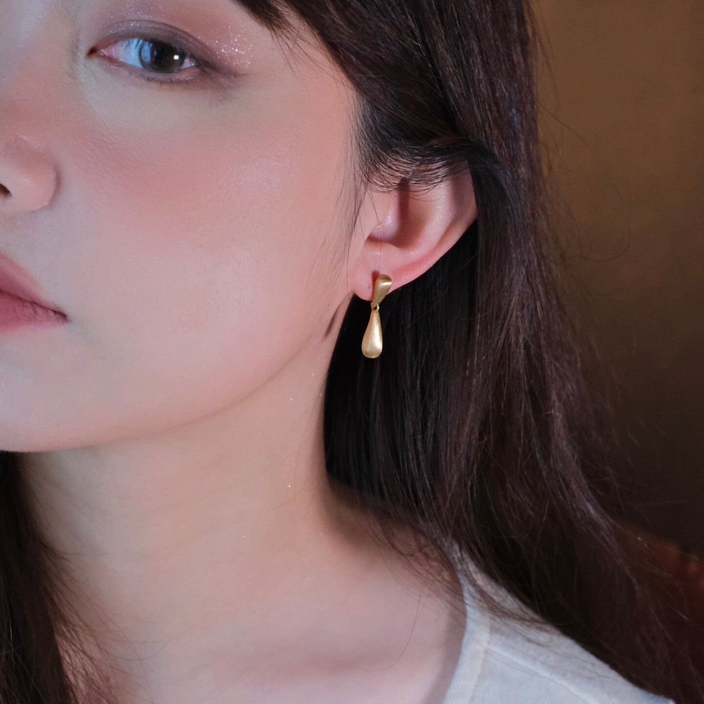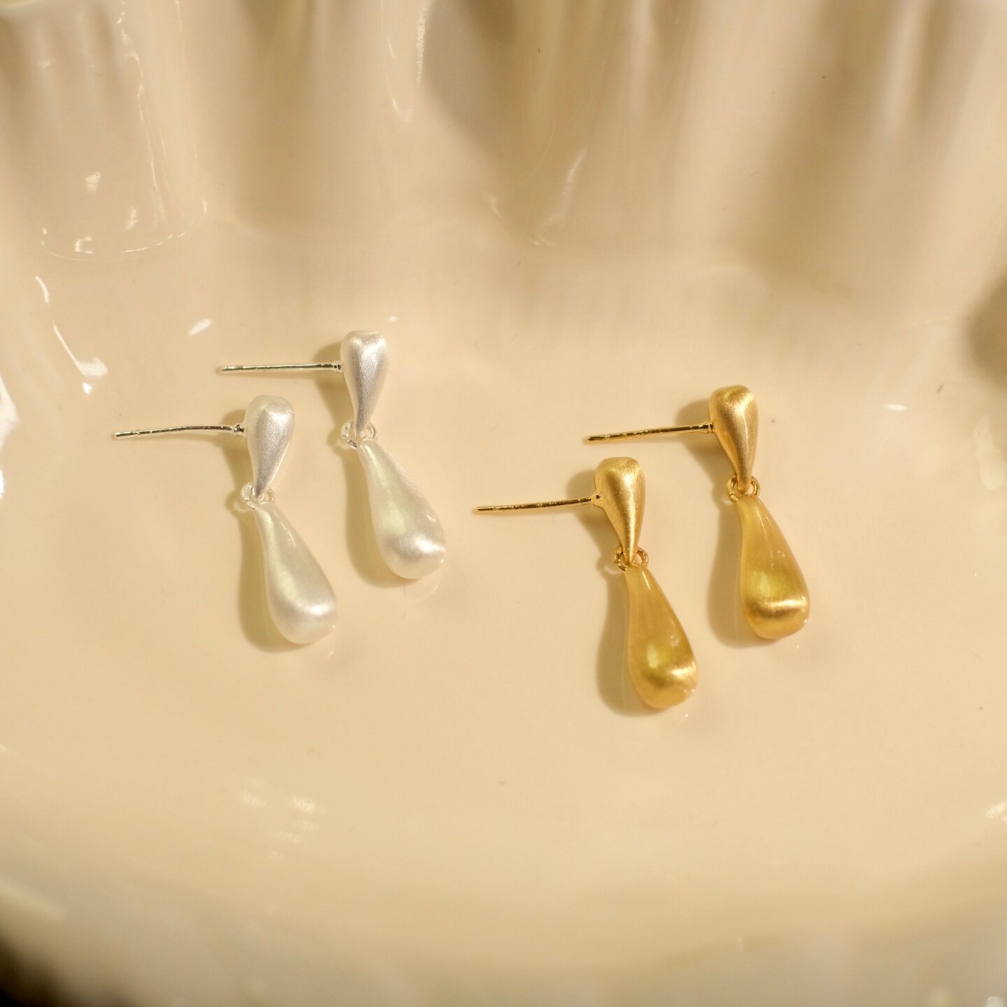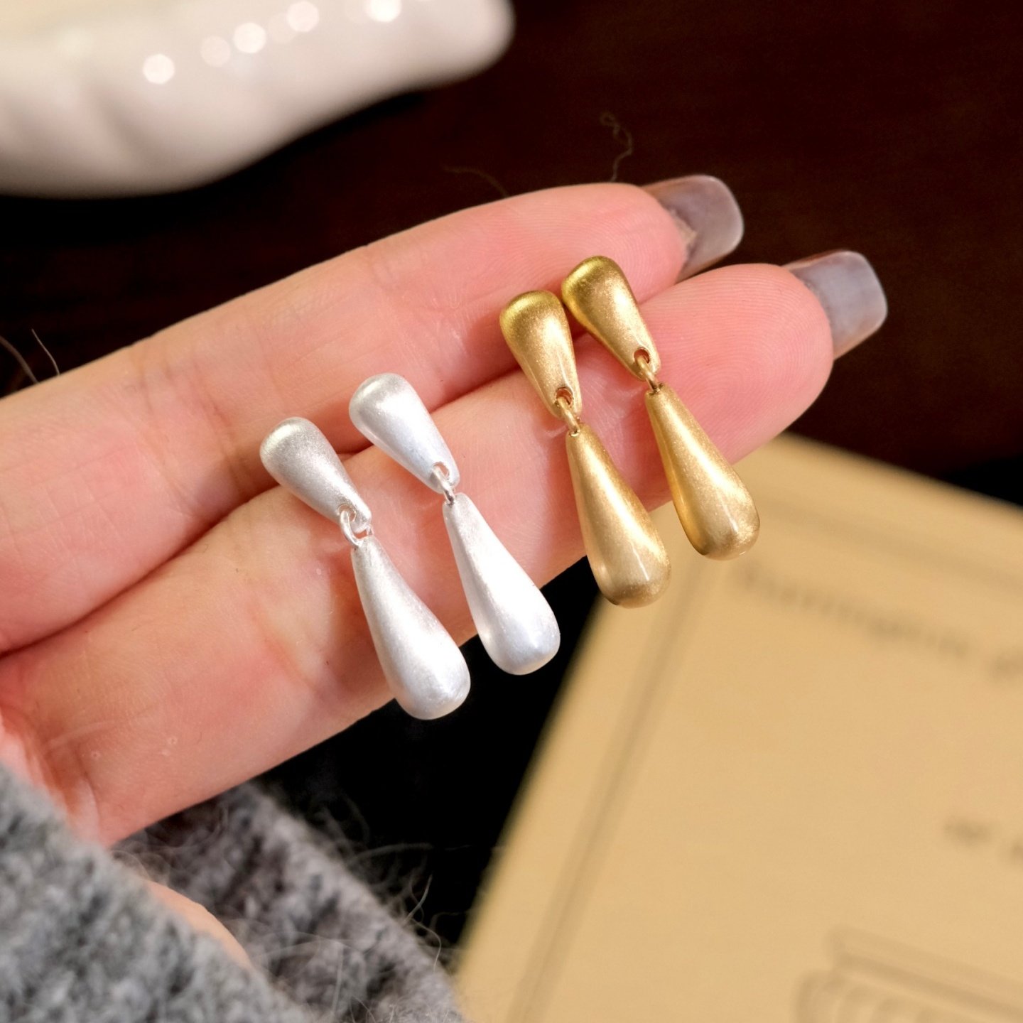 《小雨滴》法式复古气质哑光拉丝磨砂金属水滴耳钉耳夹耳饰耳环女
