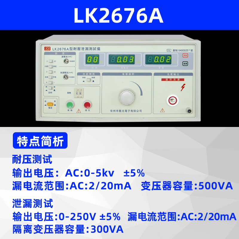 双功能安规测试仪蓝科LK2676A耐压泄露电流接地电阻测试仪
