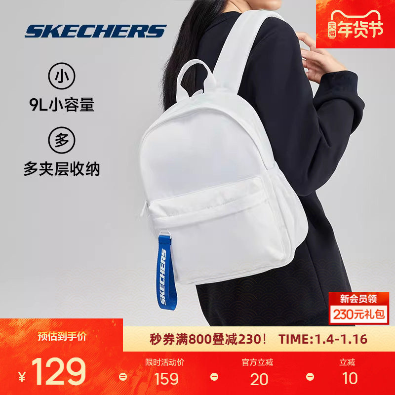 斯凯奇男女同款小型双肩背包休闲通勤逛街旅行背包清新时尚个性