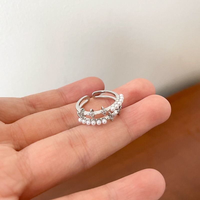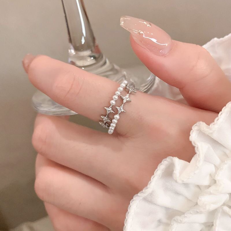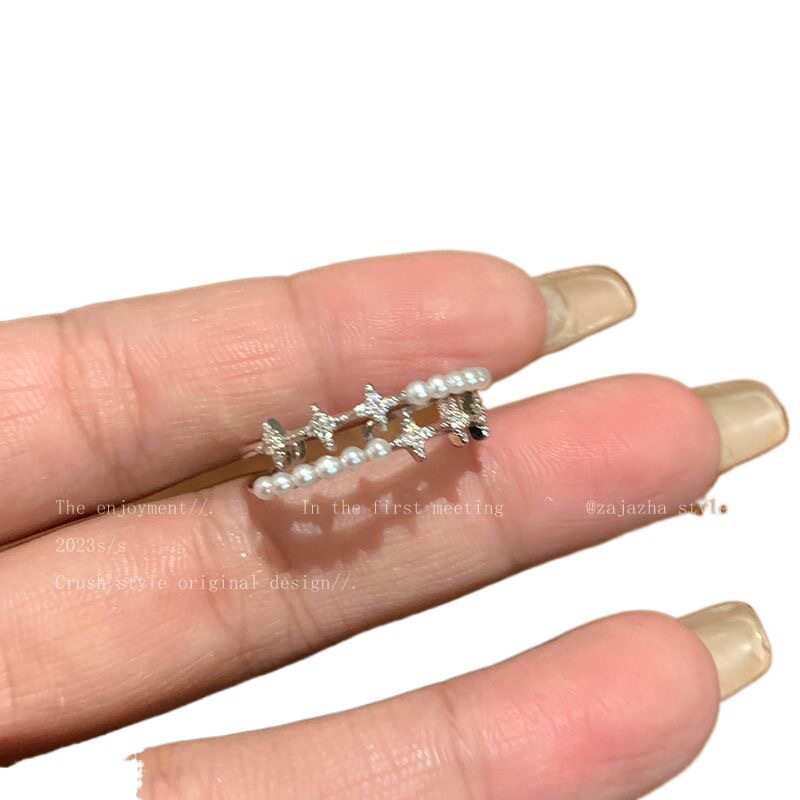 双层星星珍珠戒指女夏季新款时尚个性指环开口可调节食指戒