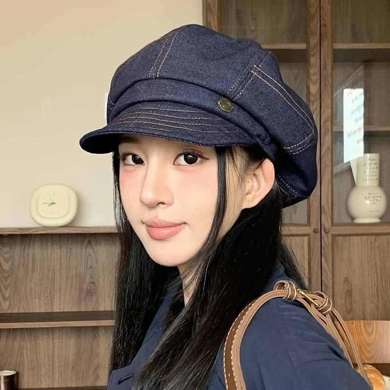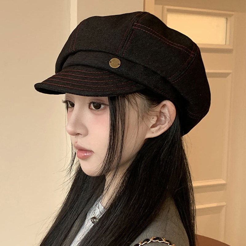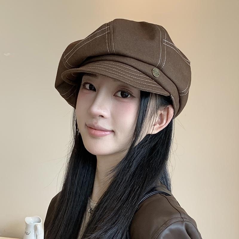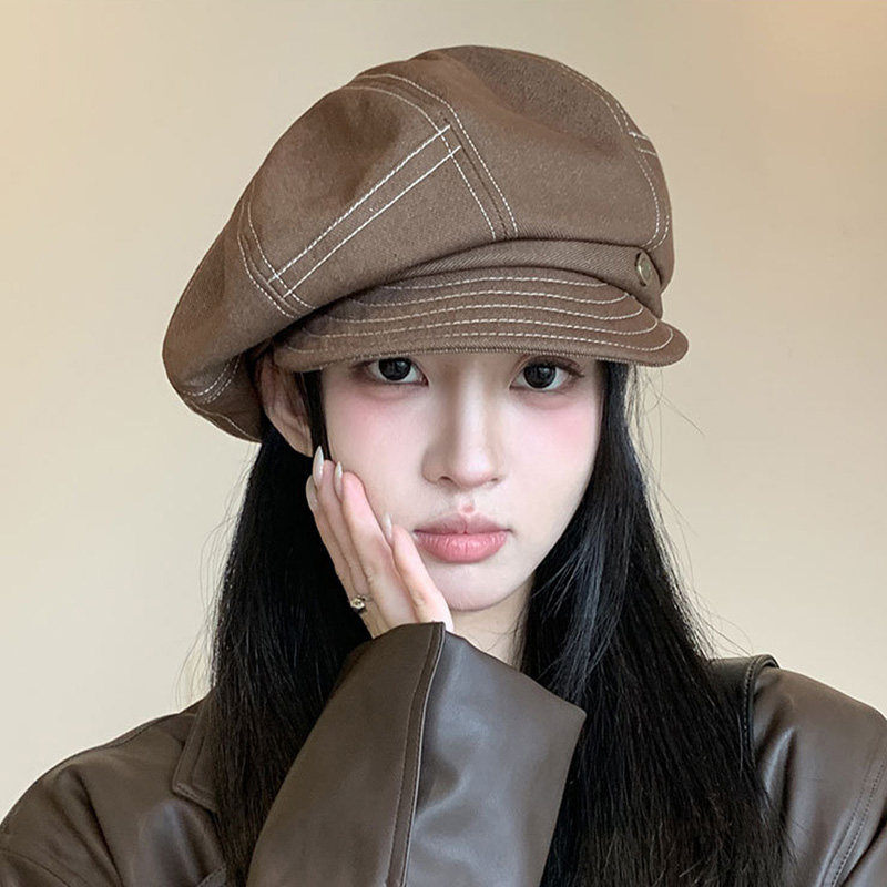 美贝雷帽女春秋日系复古大头围鸭舌八角帽显脸小画家帽子黑色咖色