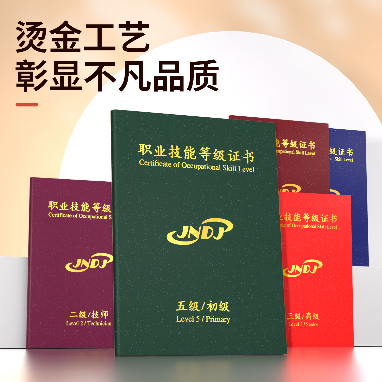 职业技能等级证书保护套封套外壳通用JNDJ职称职务资格职业证封皮人社部电工焊工一二三四五级初中高级封面