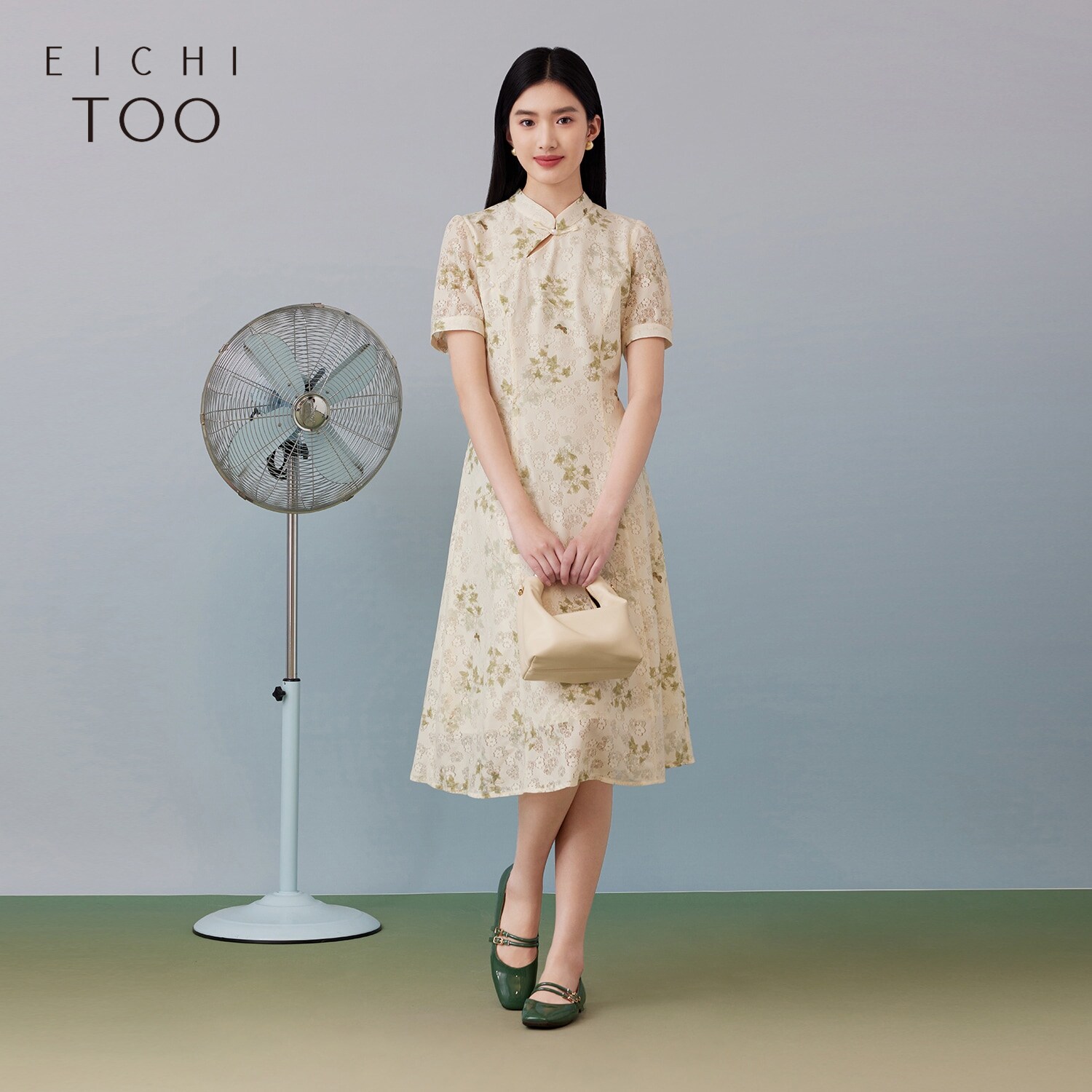 爱居兔夏季新款苏绣百花图卷联名新中式时尚短袖连衣裙
