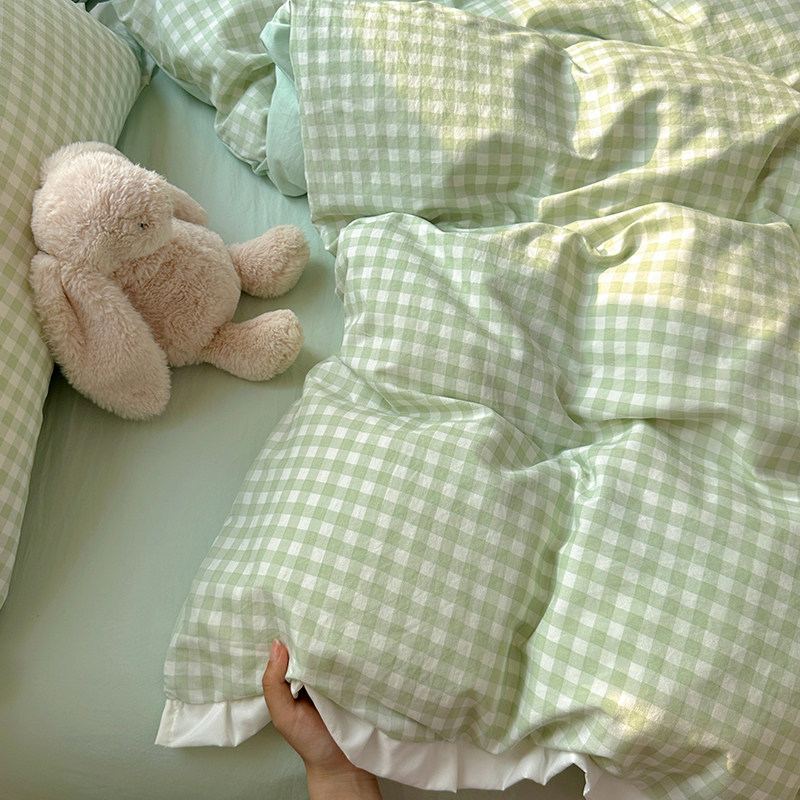 A类水洗棉双层纱四件套被罩非全棉纯棉床单人学生宿舍被套三件套