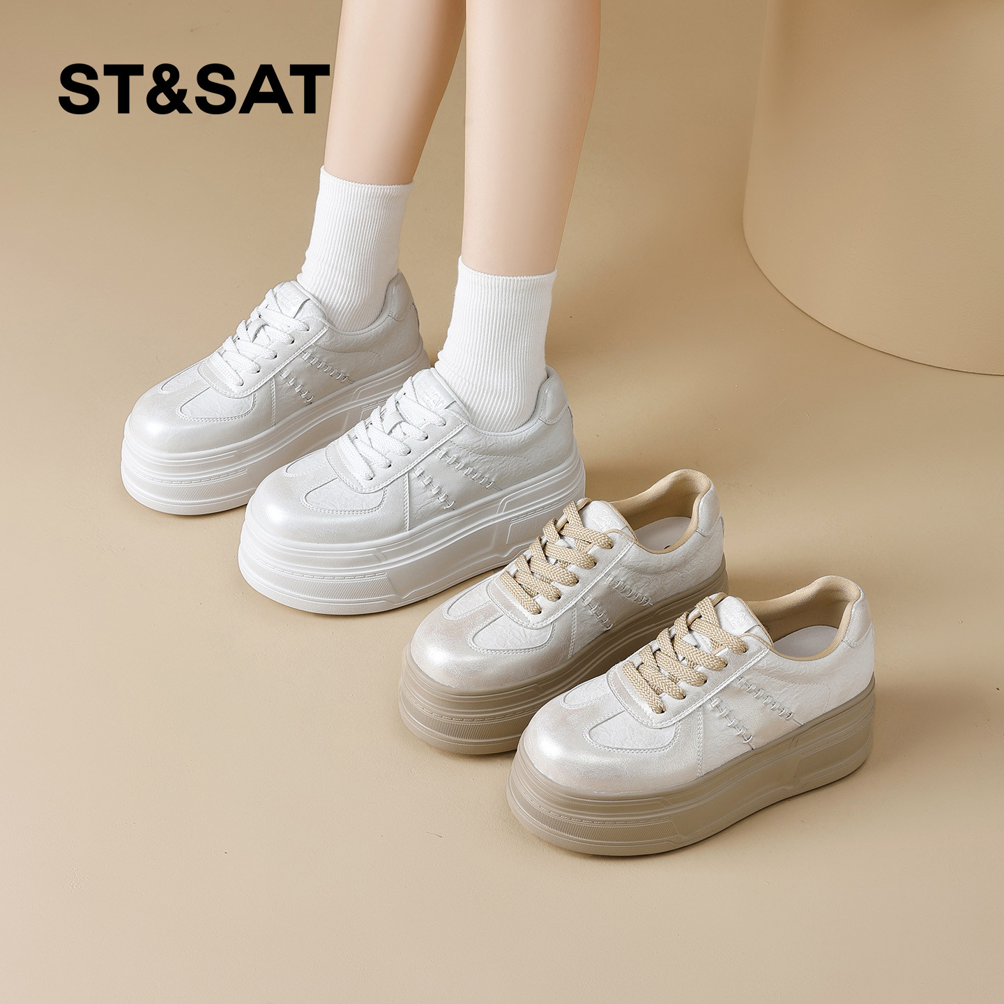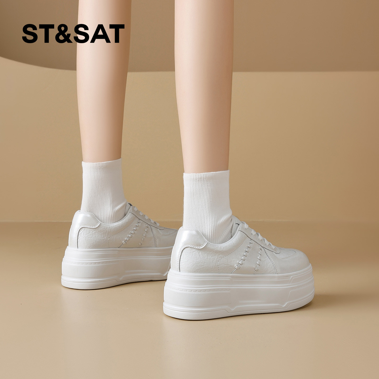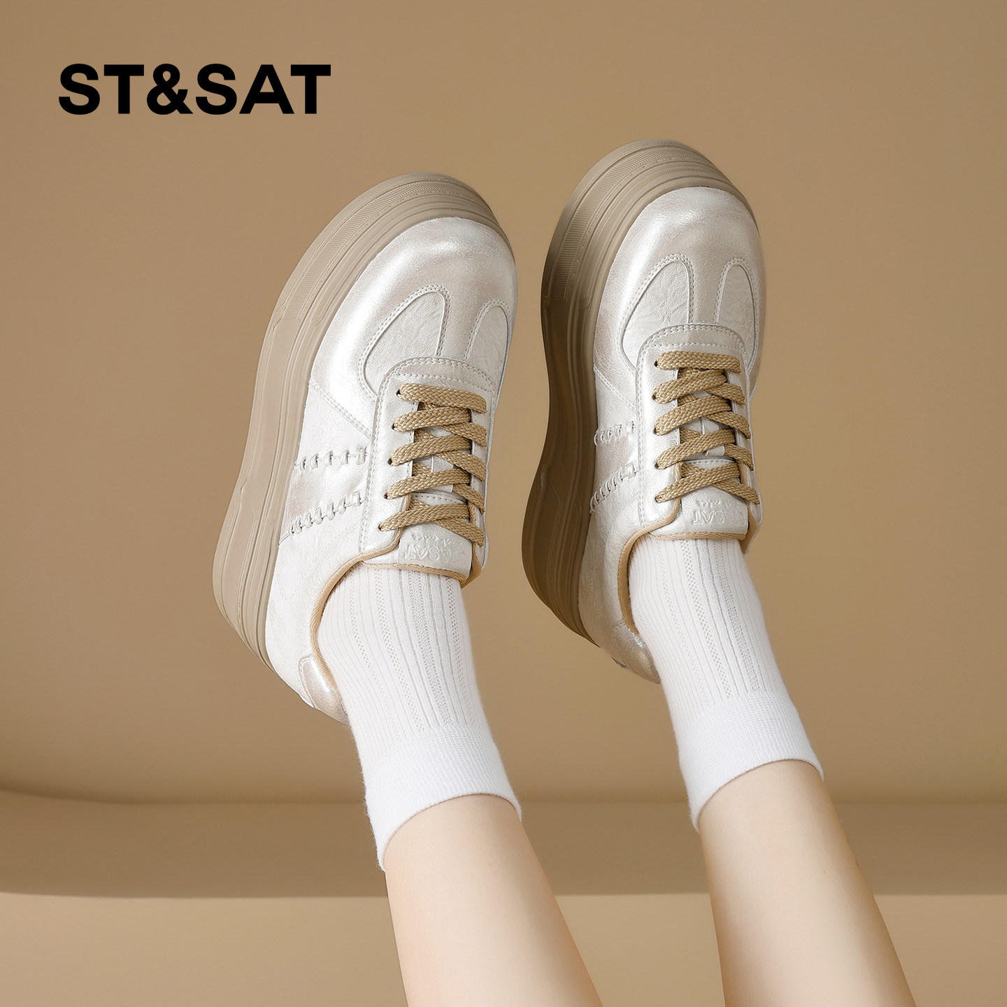 星期六松糕厚底小白鞋女2026春季新款时尚学院风通勤百搭休闲板鞋