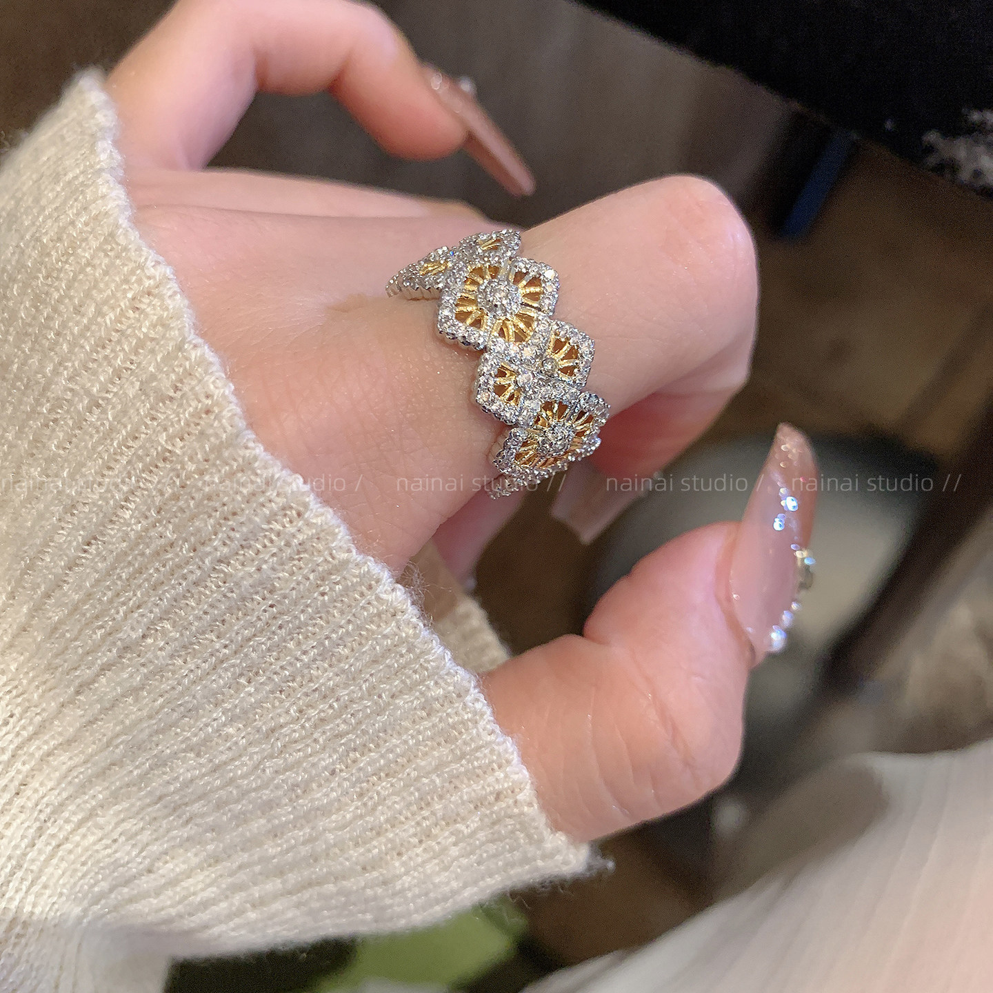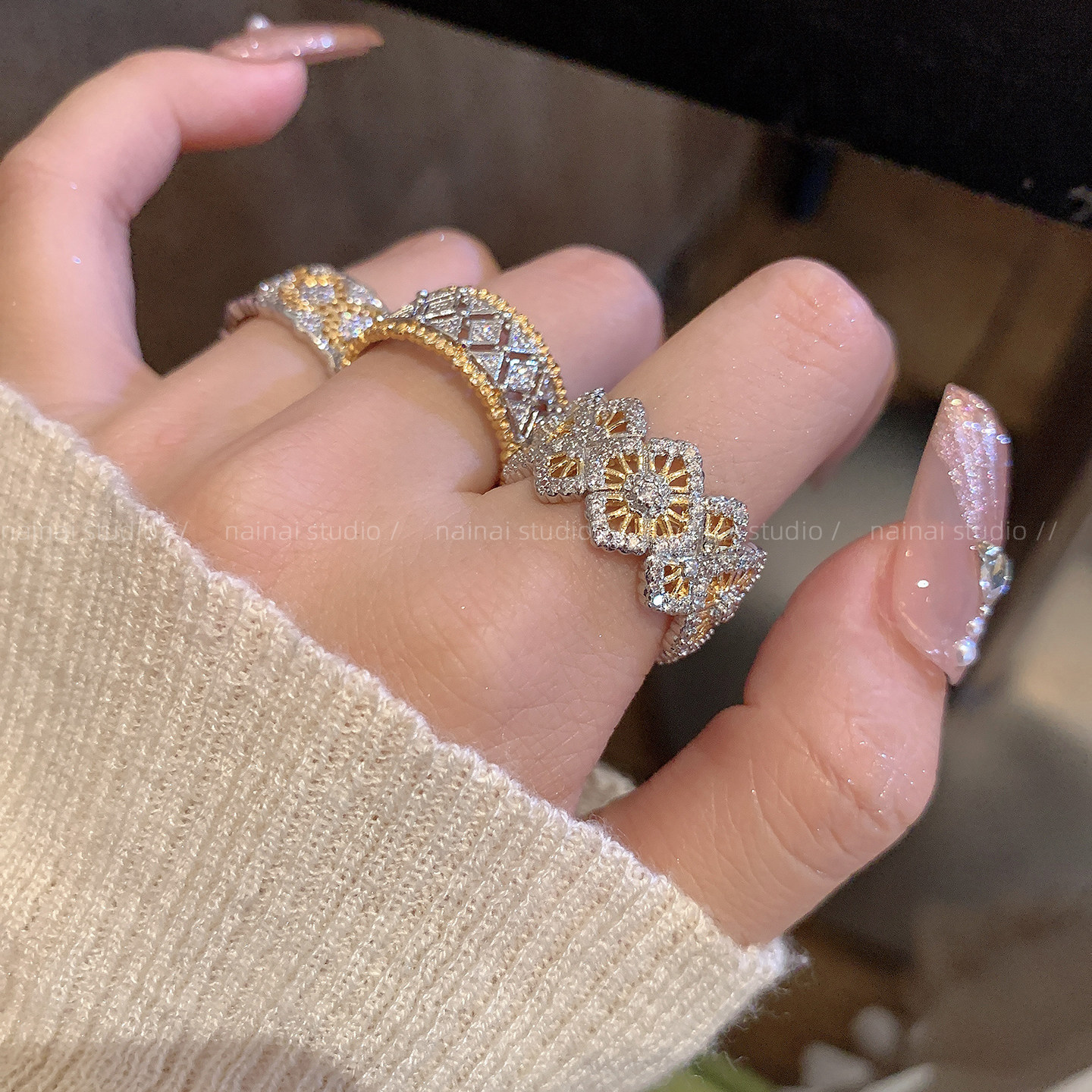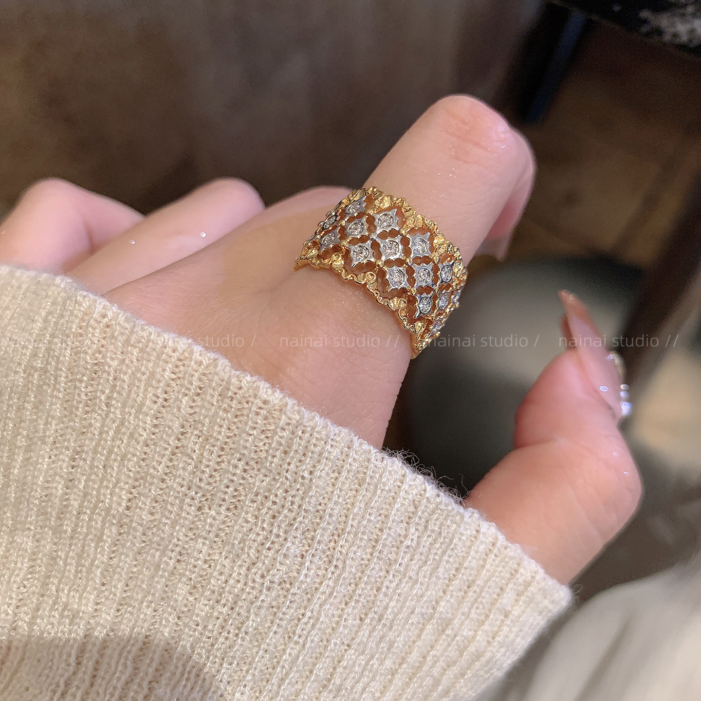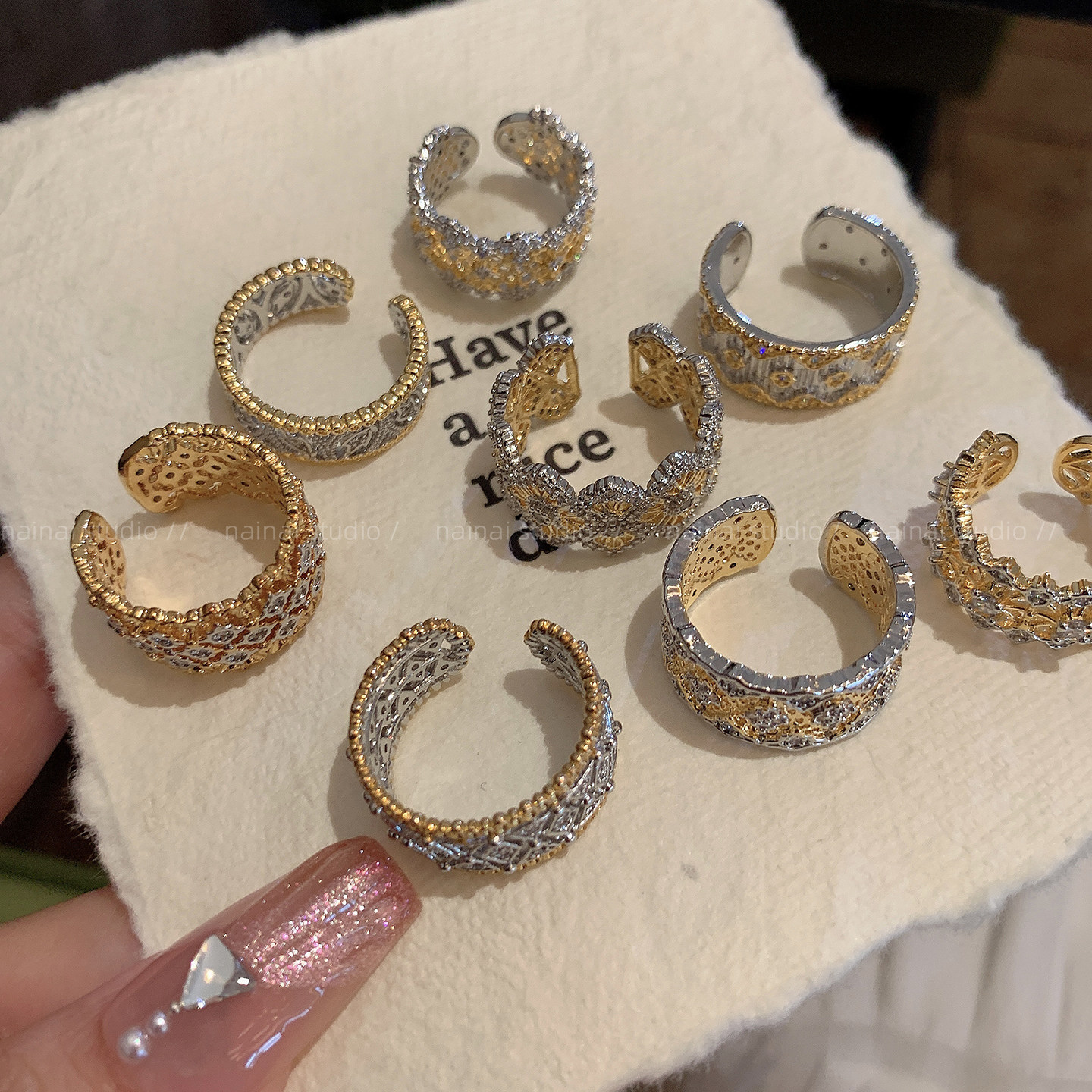 宫廷风金色戒指集合~轻奢高级感复古宽边蕾丝食指戒气质法式指环A