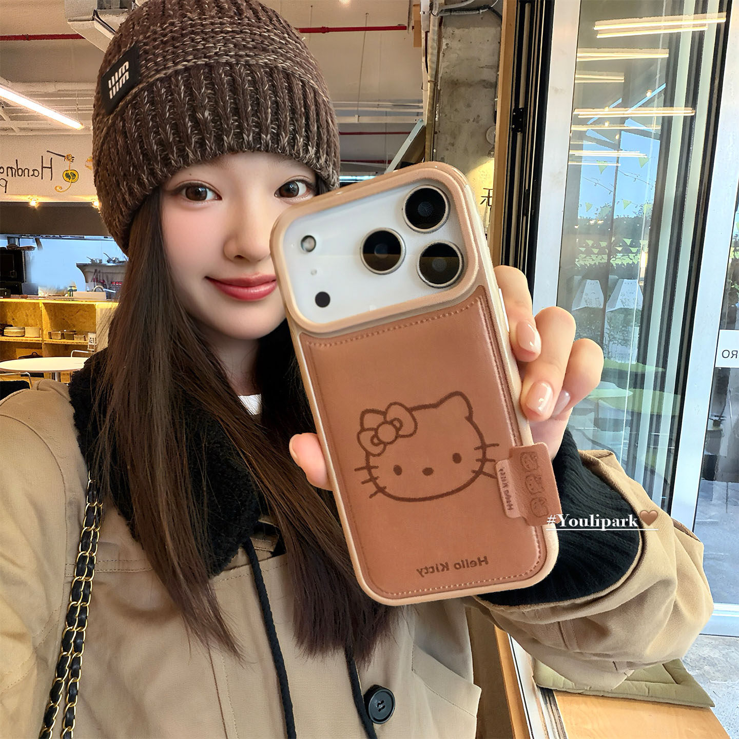 由里公园ins韩系秋冬可爱栗子棕线条猫咪17适用17pro苹果17ProMax手机壳iPhone16全包14新款16Promax保护套女