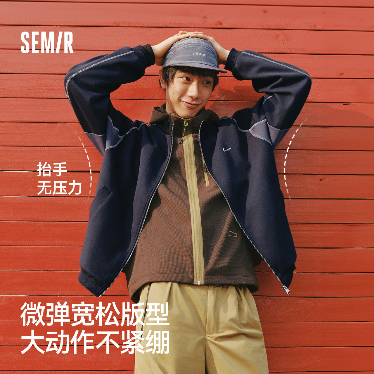 森马撞色哈苏线针织外套男2026春季新款宽松立领运动上衣男女同款