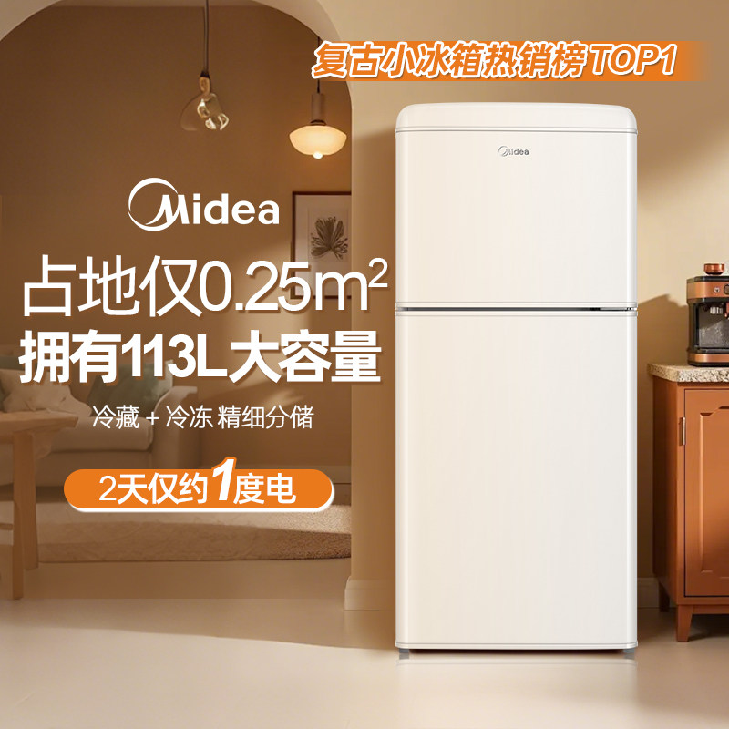 美的复古小冰箱46/96/113L双温双门租房母婴美妆小型家用冷藏冷冻