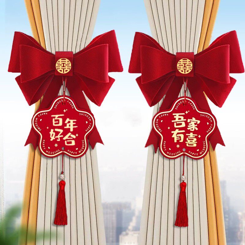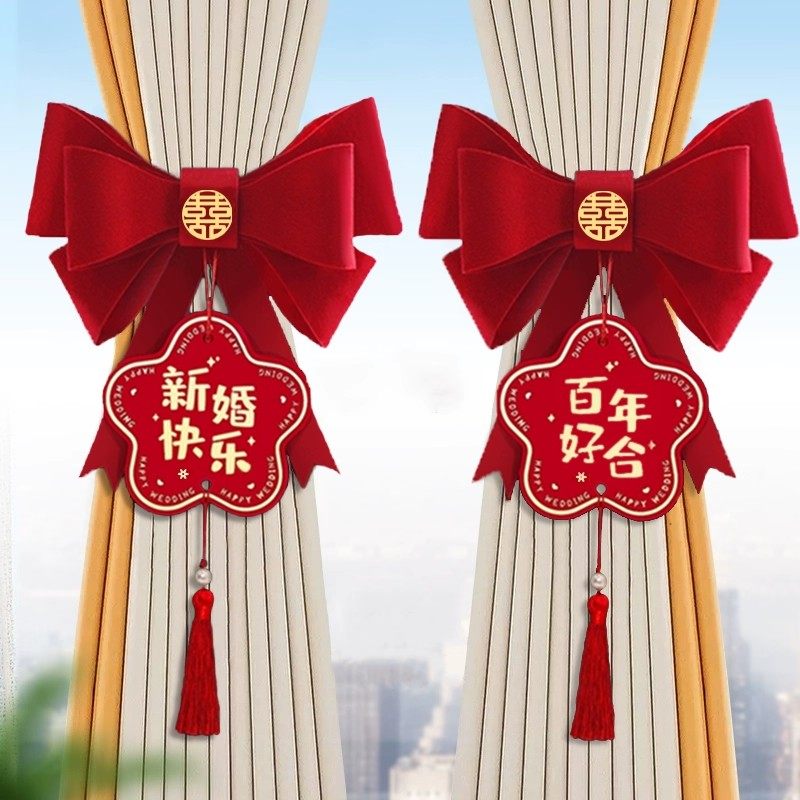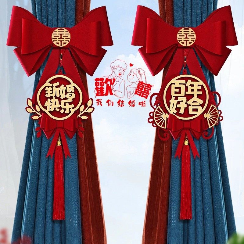 结婚窗帘绑带拉花女方婚房布置喜字挂件新房卧室装饰婚庆用品挂饰