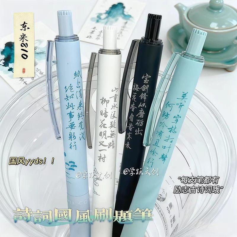 东米中国风文字按动中性笔810新款文艺学生考试专用刷题笔高颜值CS头黑色水笔速干顺滑黑笔签字笔圆珠笔