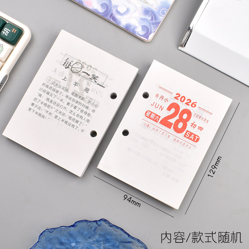 2026年台历芯台历桌面日历两孔64K商务小日历老黄历每天一页简约创意桌面摆件办公金属台历架替芯家用台历本