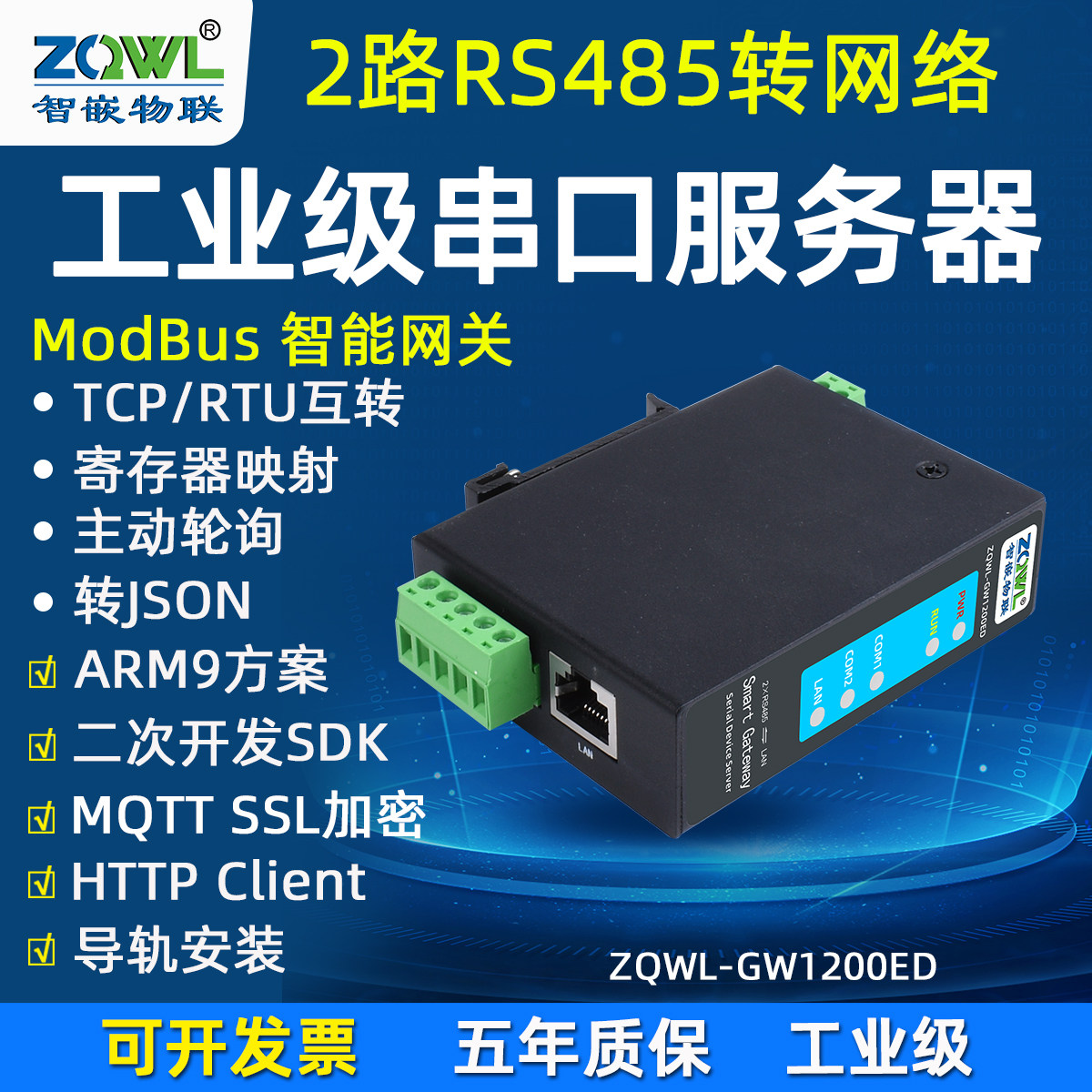 【智嵌物联】支持二次开发串口通讯服务器2路RS485转以太网模块MQTT SSL加密主动轮询HTTP Client边缘计算