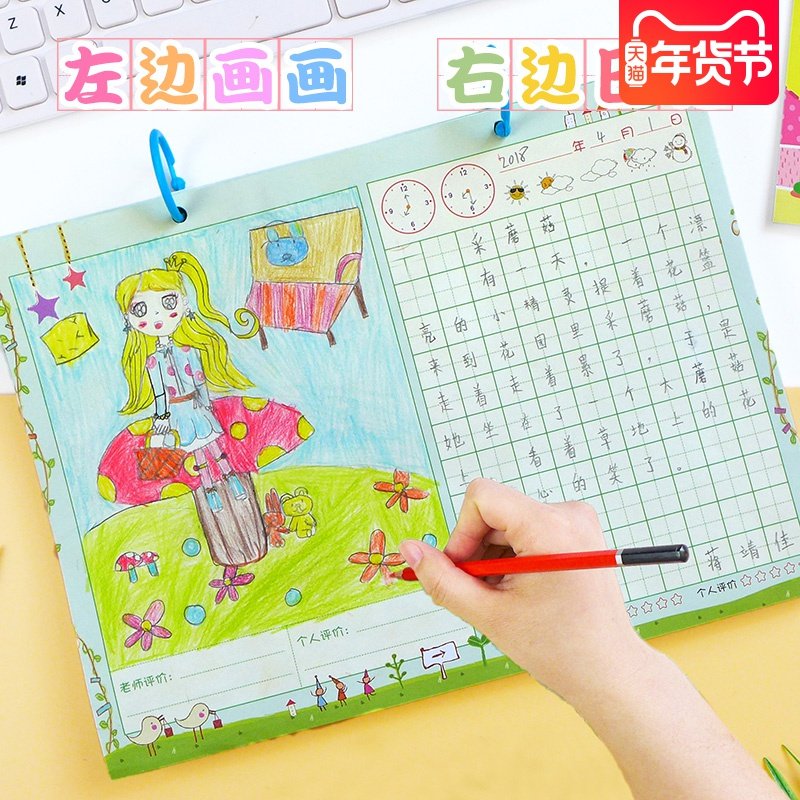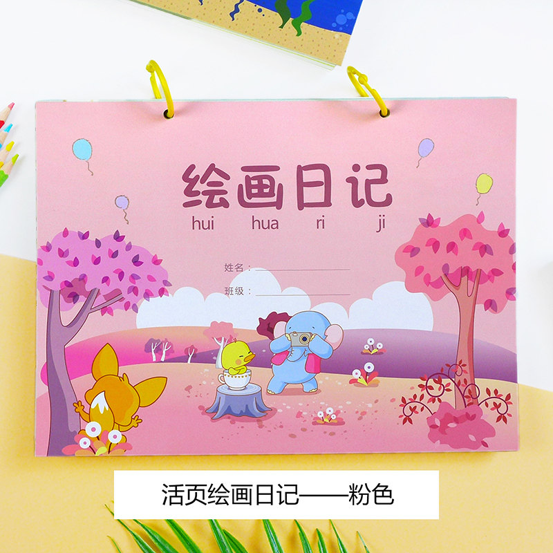 A4大号绘画日记本加厚内页活页卡环一二年级小学生日记本儿童绘画创意彩色图画本日记本子少儿绘画日记写话本