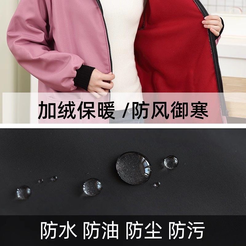 加绒保暖罩衣女士秋冬季加厚防水家用厨房长袖围裙成人工作服防油
