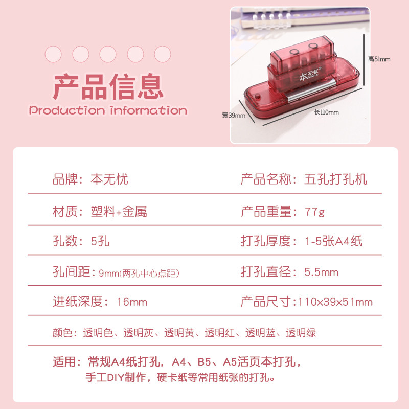 多功能5孔打孔器多孔打洞器圆环孔b5活页本打孔机活页夹小型5孔器