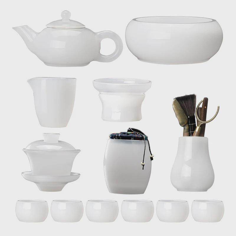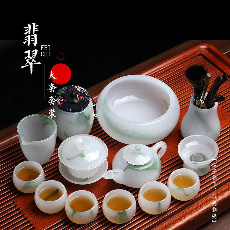 玉瓷茶具套装泡茶琉璃功夫茶具全套家用盖碗整套办公玻璃杯礼盒装