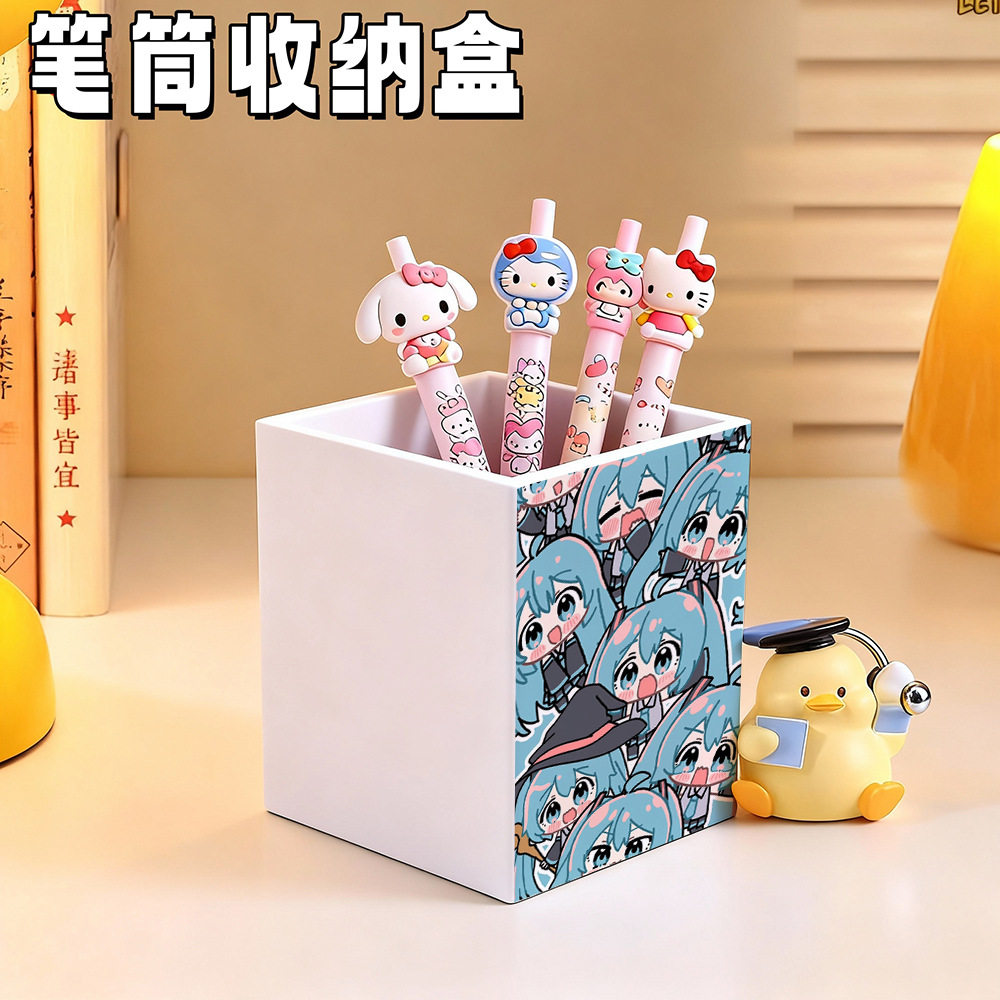 小初音笔筒学生桌面文具收纳寝室化妆刷多格分类文具收纳大容量