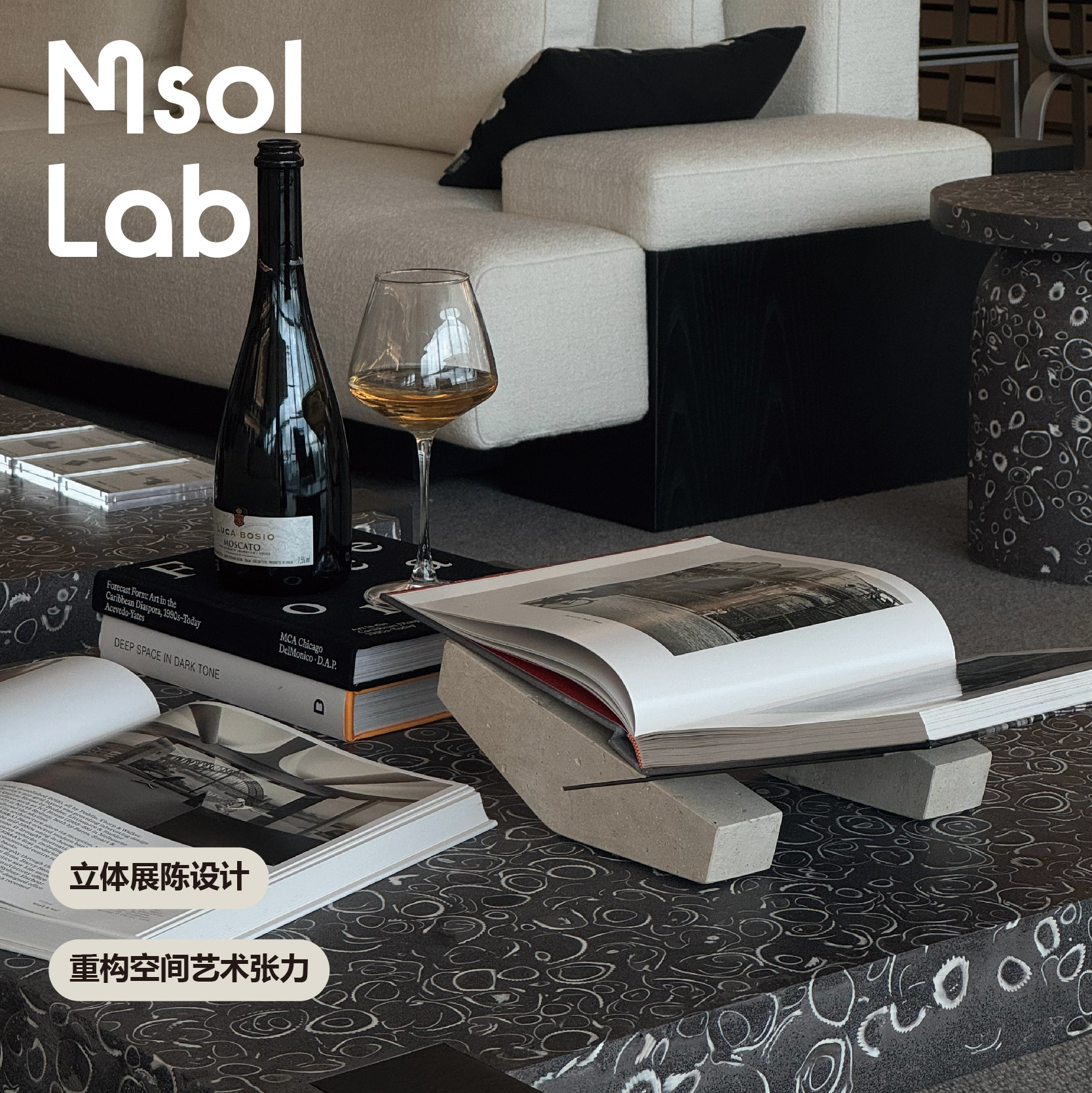 Msol目所 msol lab书架 原创设计 石材金属悬浮造型陈设软装搭配