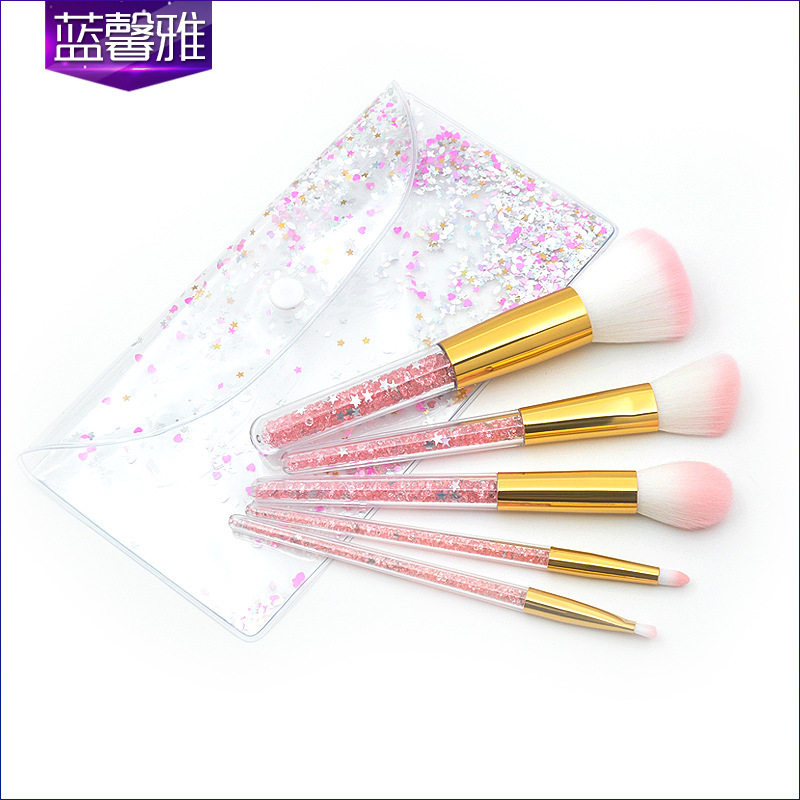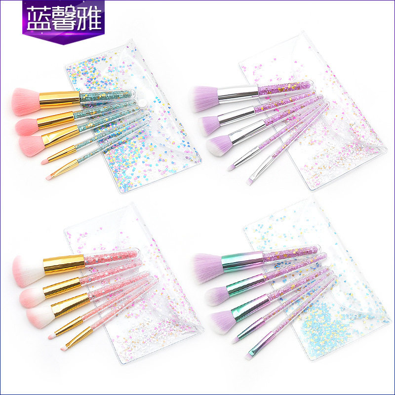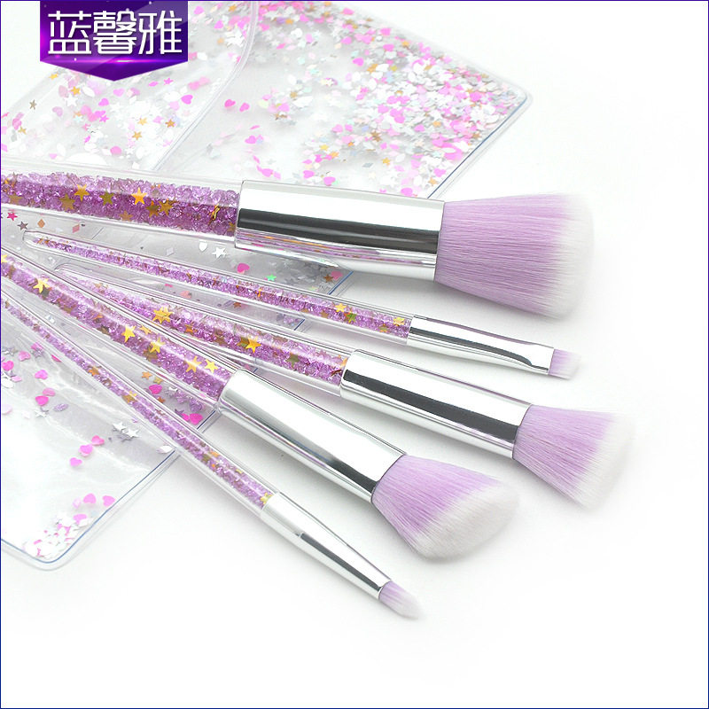 新款 5支透明柄化妆刷套装 眼部刷钻石颗粒透明包包 彩妆美妆工厂