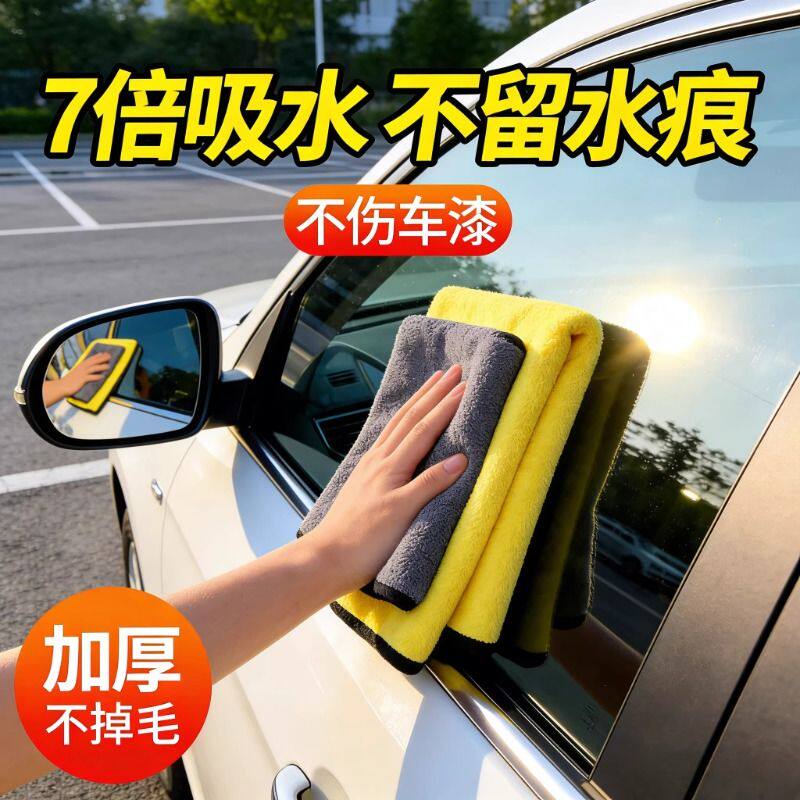 洗车毛巾擦车布双面用不掉毛吸水家用擦玻璃加大加厚清洁钓鱼抹布