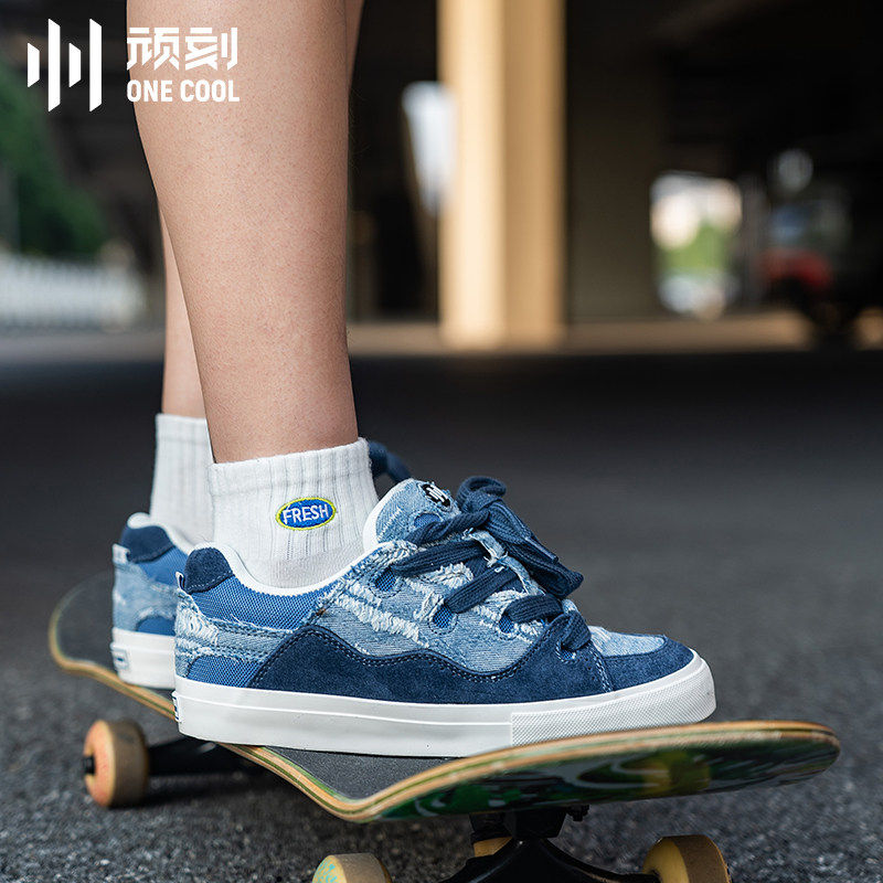 顽刻官方面包鞋翻毛皮丹宁水洗牛仔拼接秋冬BAKE男女国潮滑板鞋