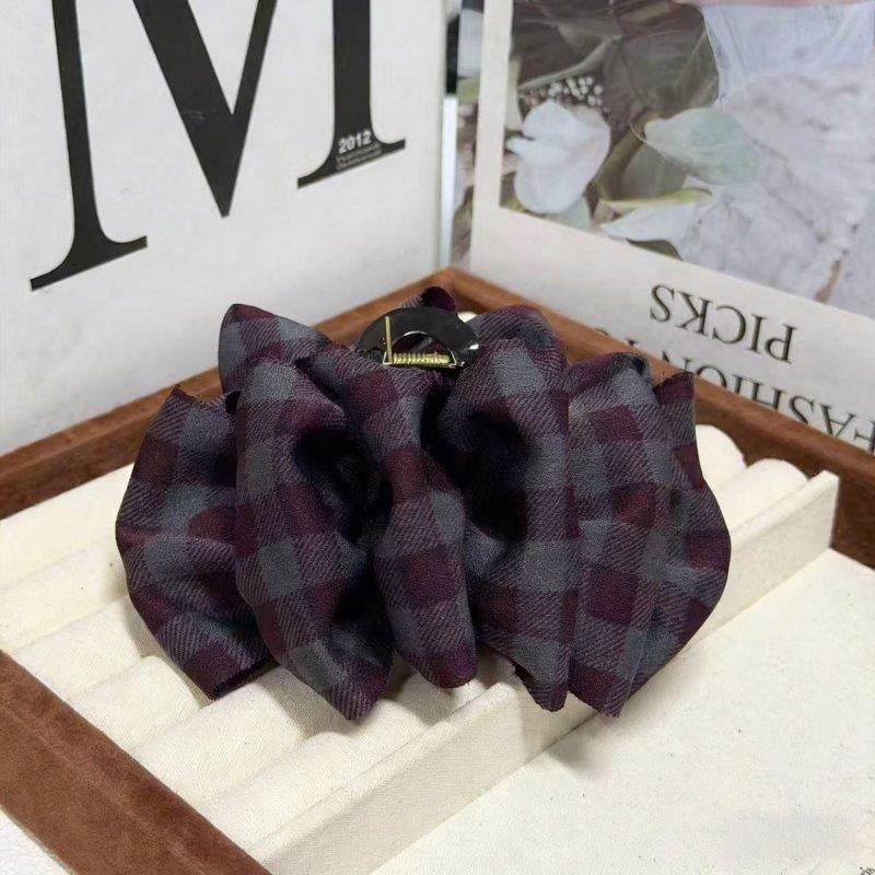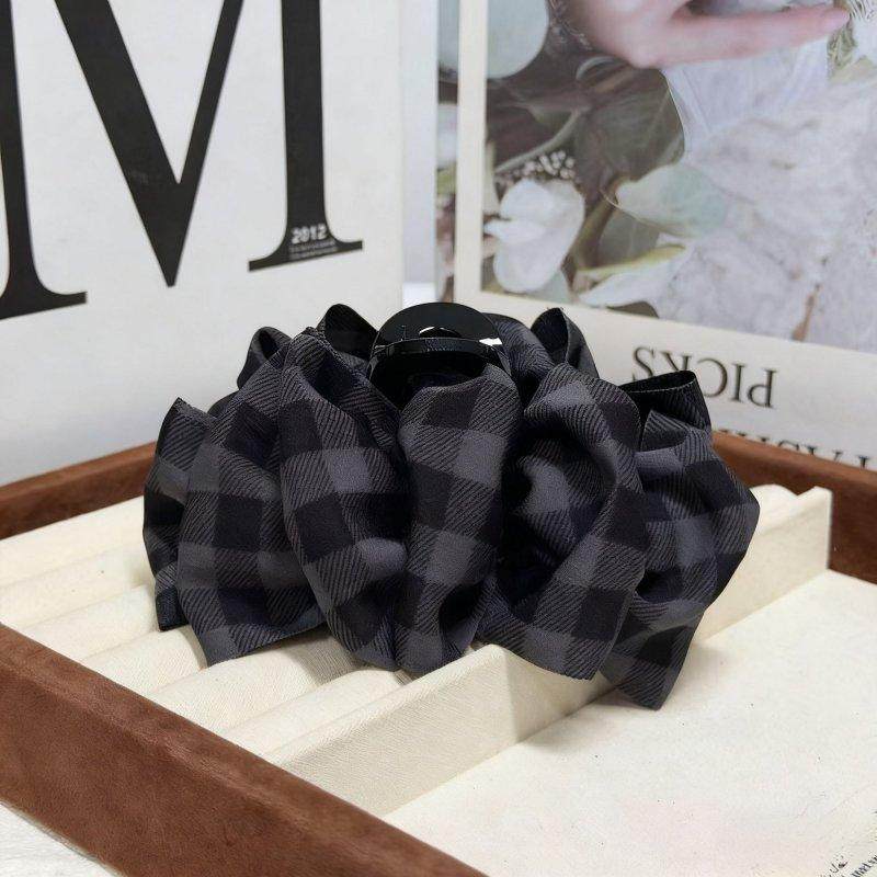复古格纹云朵抓夹发夹泡泡女2025新款后脑勺盘发高级感鲨鱼夹头饰
