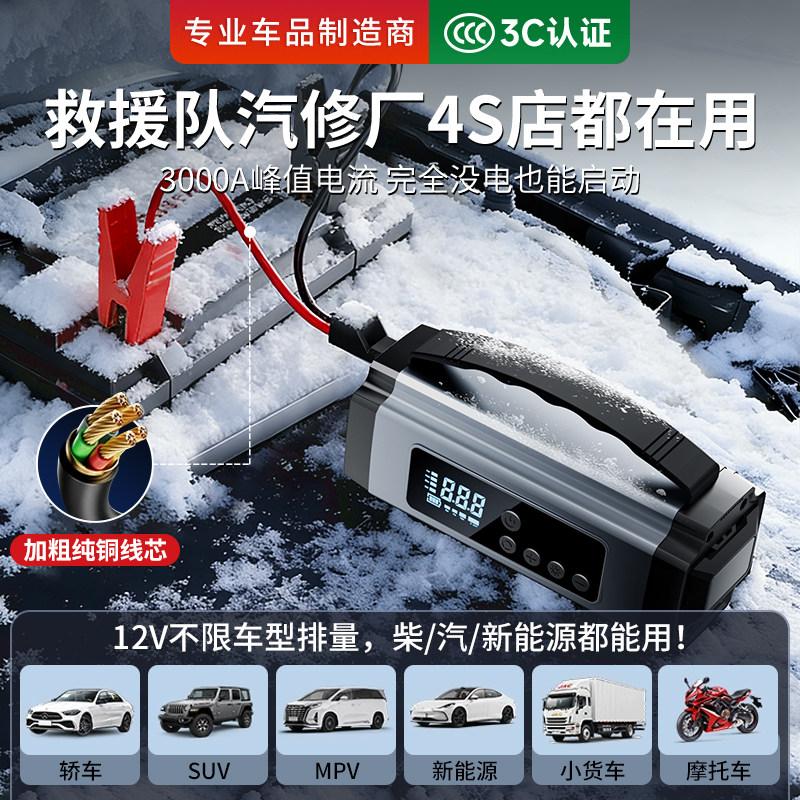埠威BUWEI汽车应急启动电源车载充气泵一体机便携车用强力搭电宝