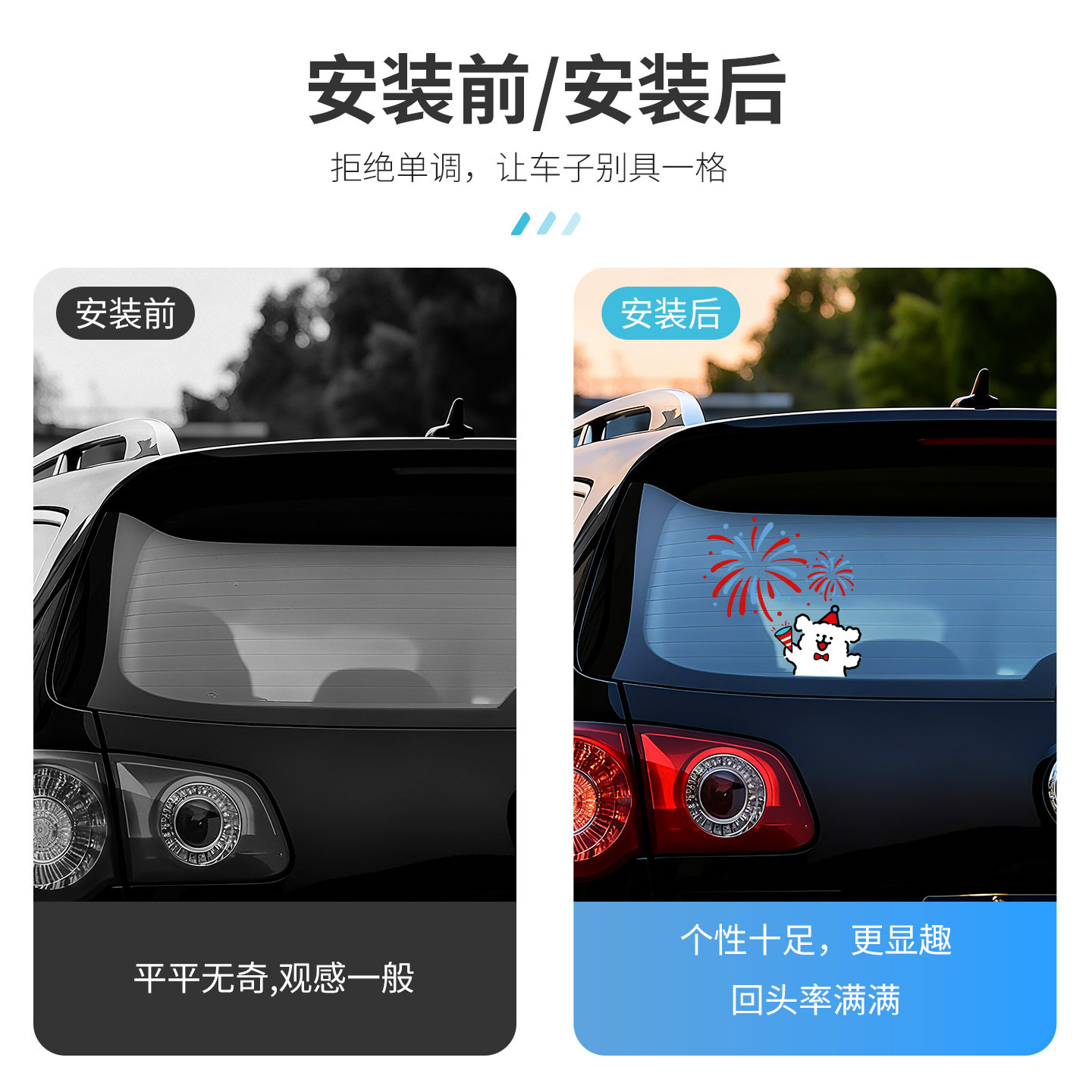 七彩镭射车身车门后档玻璃轮眉后翼车标遮挡划痕拉花装饰汽车贴纸