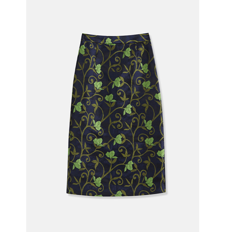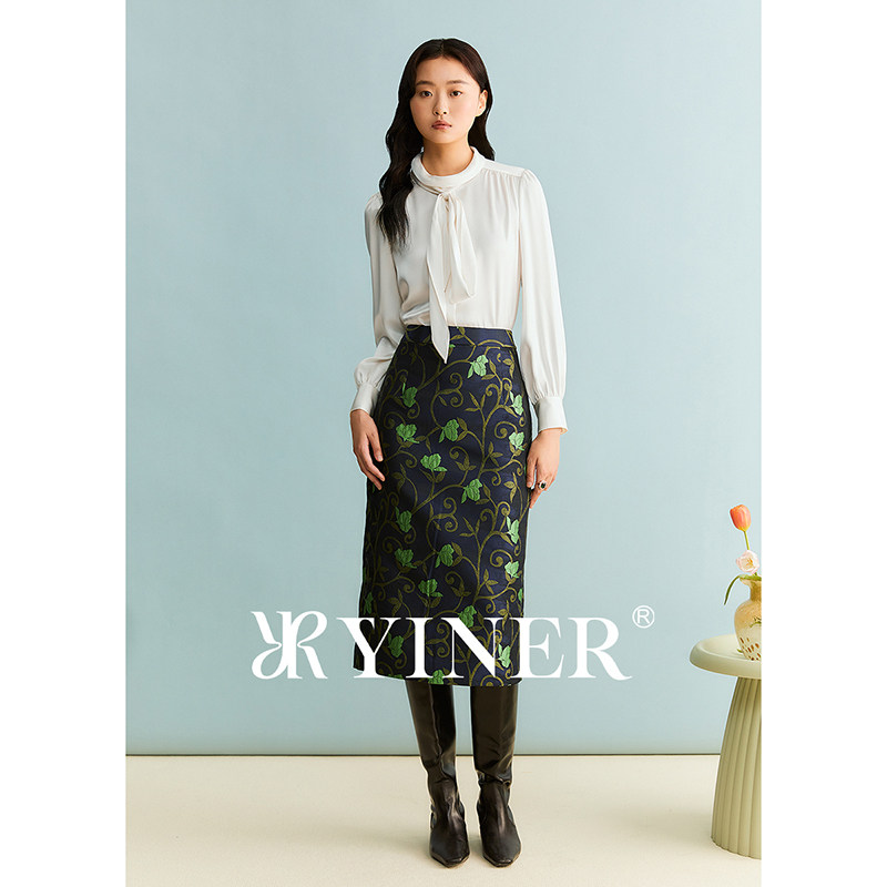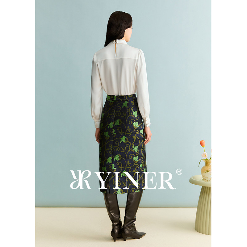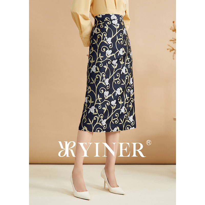 【刘涛同款】YINER音儿女装秋季法式优雅提花高腰开衩半身裙
