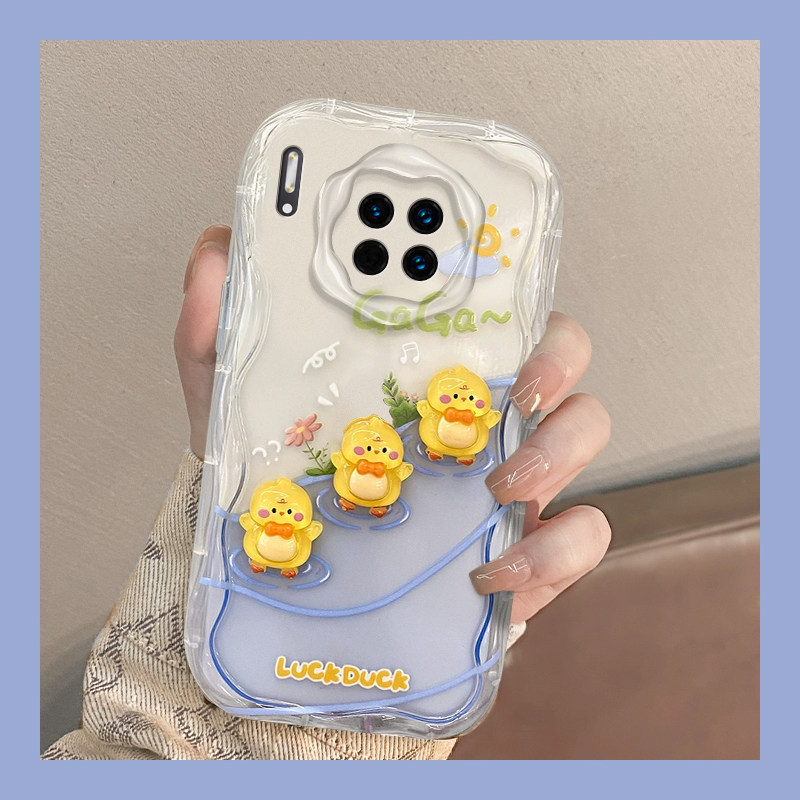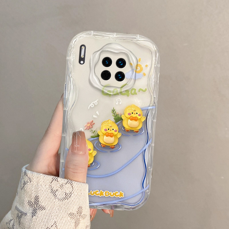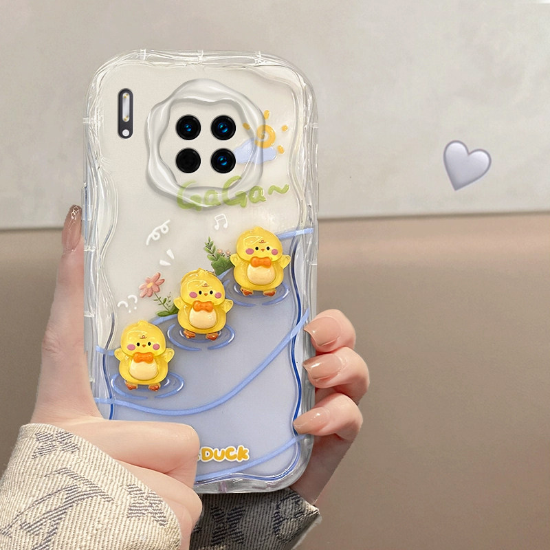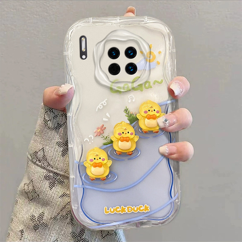 适用于华为Mate30新款手机壳时尚辣条立体游泳小黄鸭Mate30Pro奶油纹透明硅胶保护套镜头全包防摔软壳