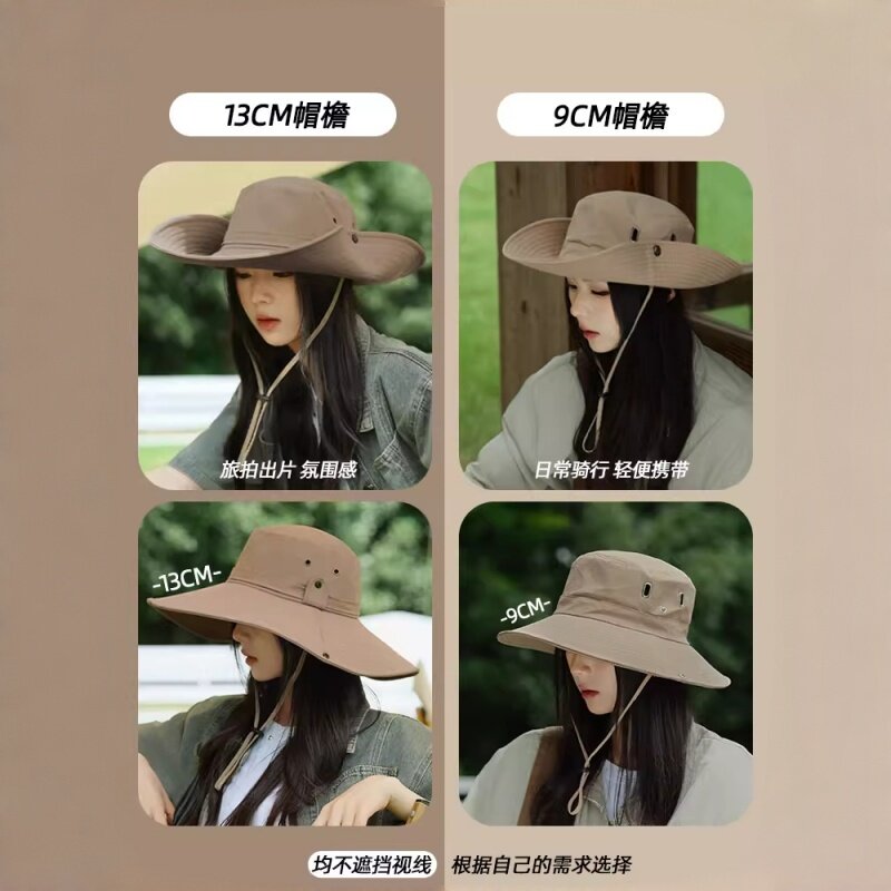 西部牛仔登山帽渔夫帽爬山徒步防晒帽女户外太阳男遮阳大帽檐帽子