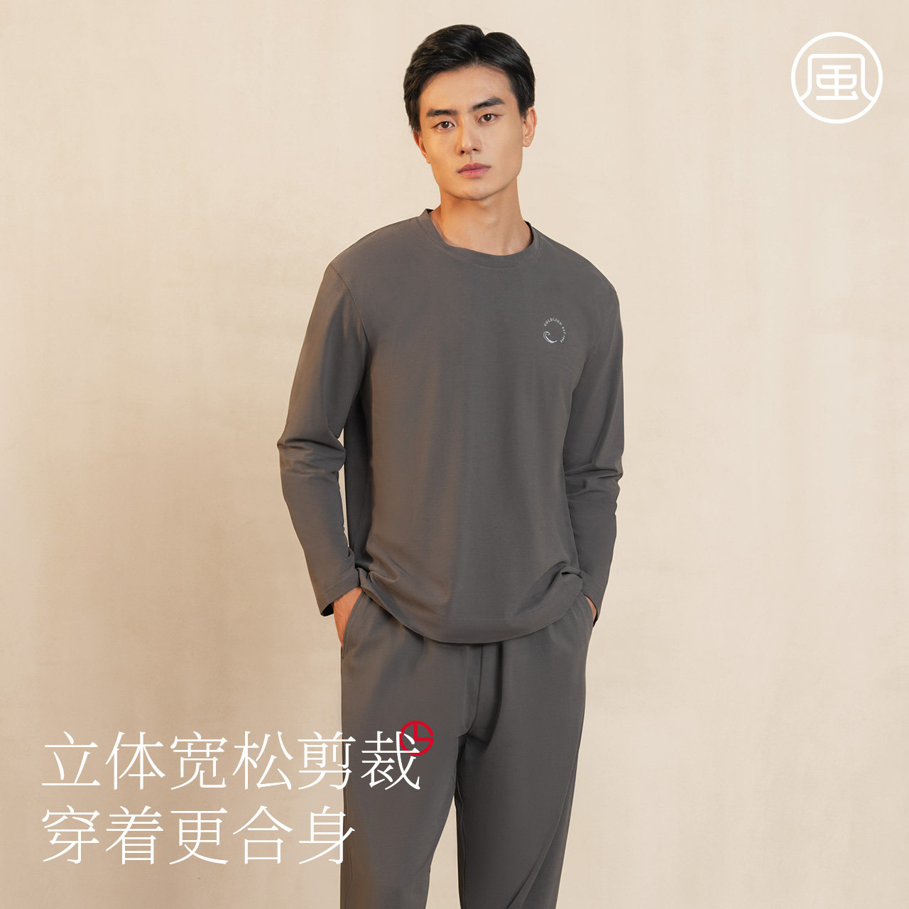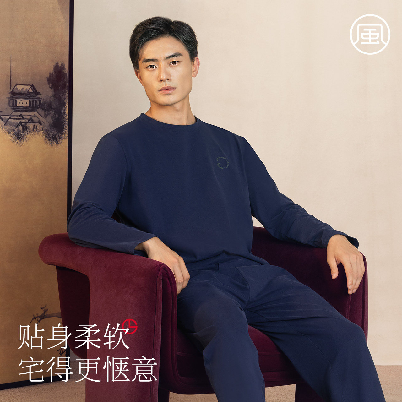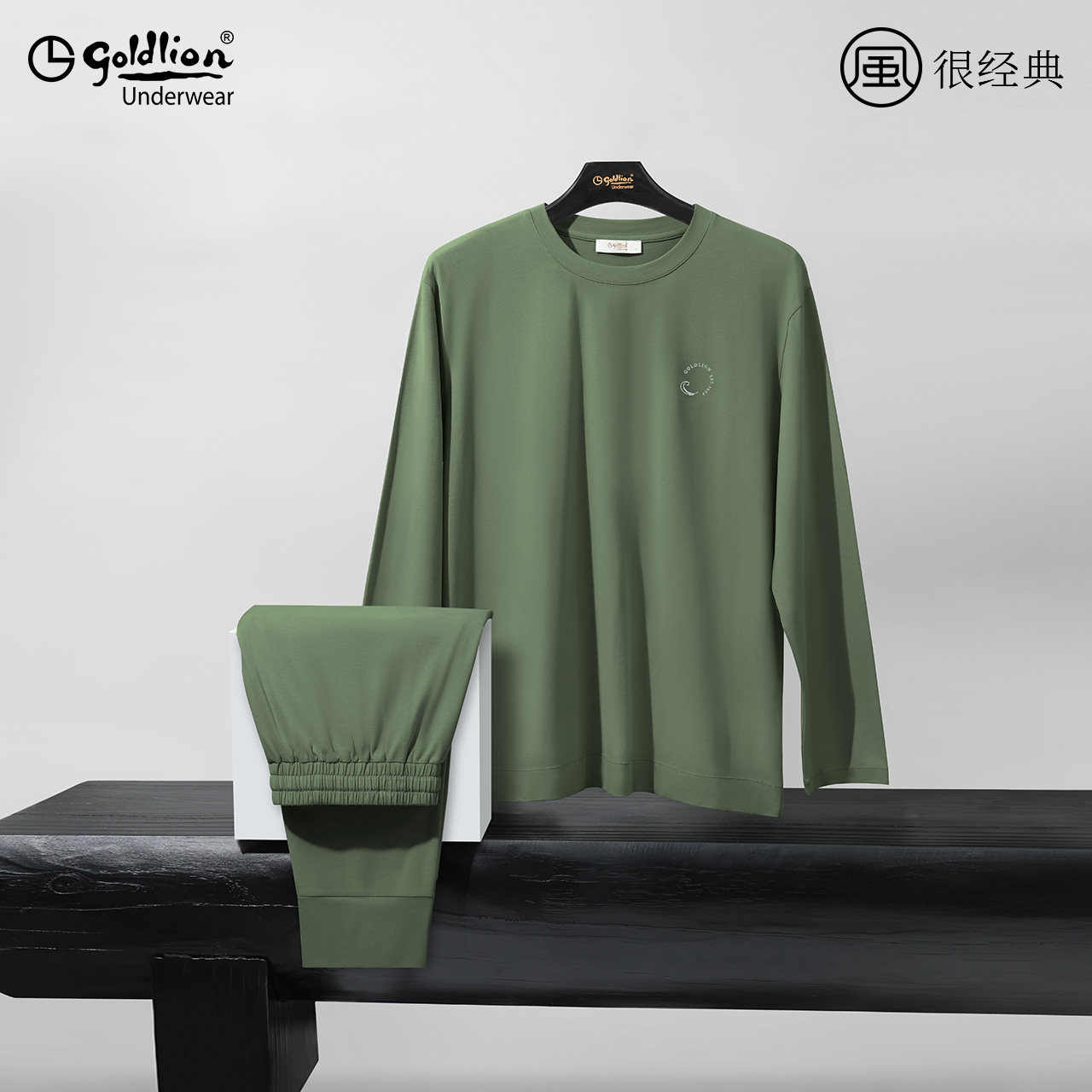 金利来睡衣男士春秋季新款纯棉抗菌圆领长袖可外穿家居服套装
