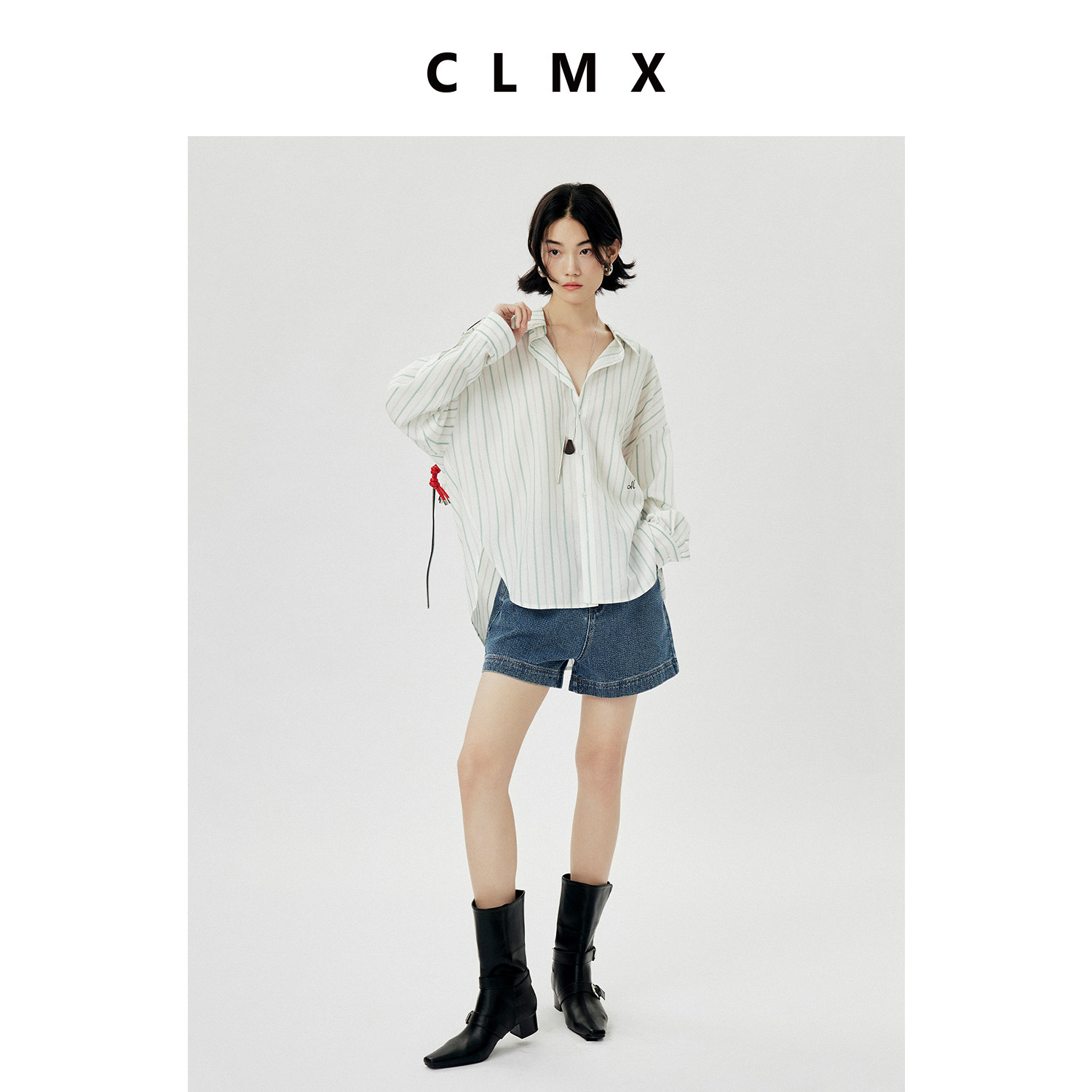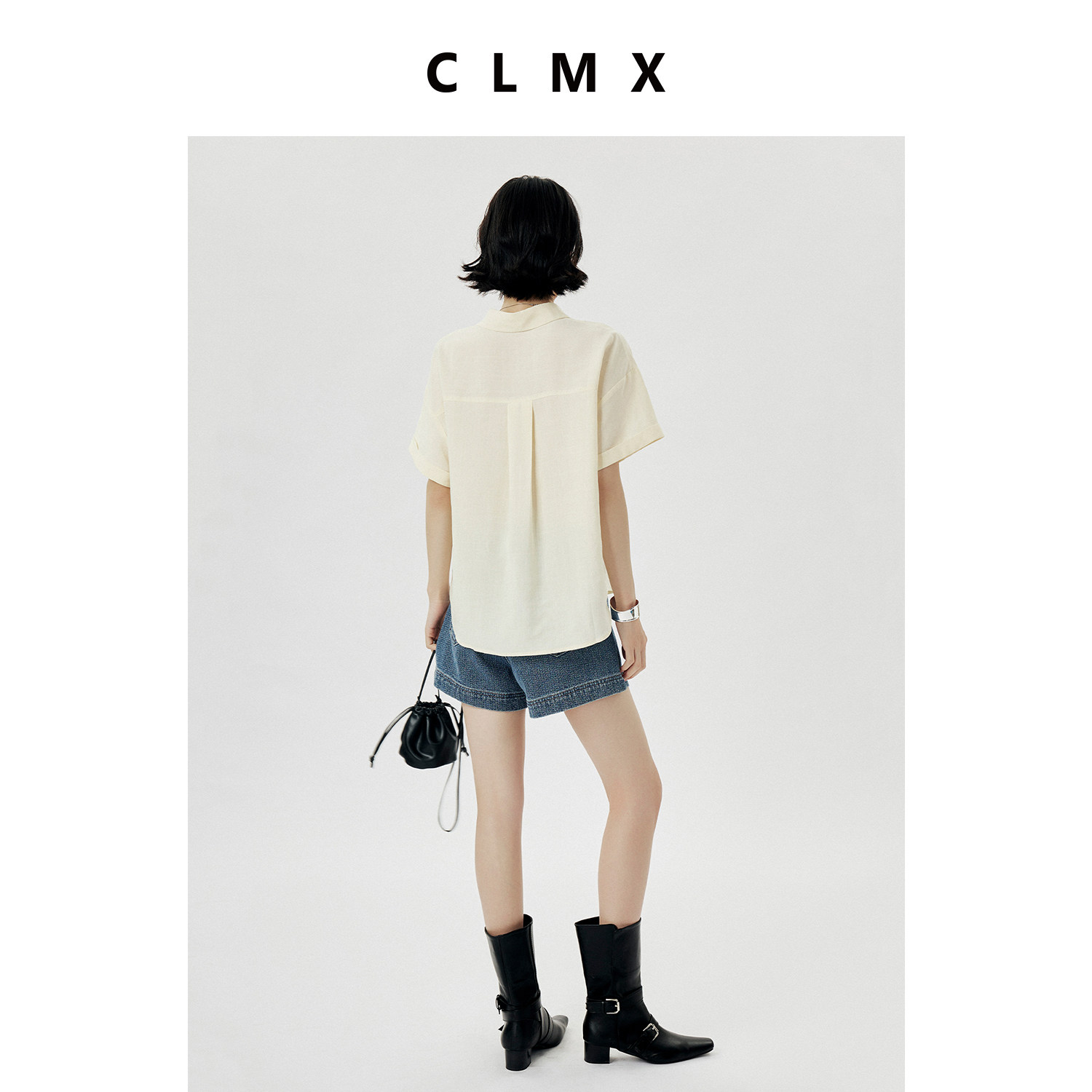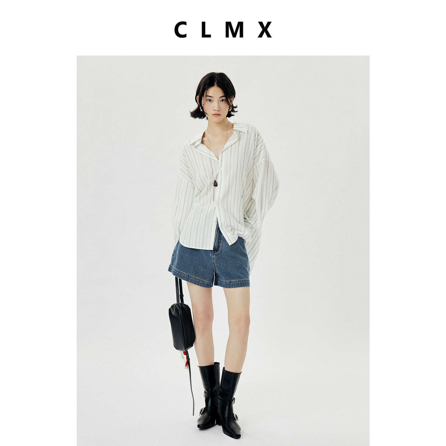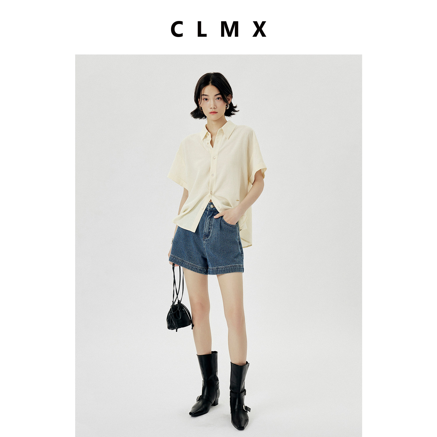 CLMX夏季休闲做旧裤子轻薄再生纤维棉混纺微弹高腰显瘦牛仔短裤女