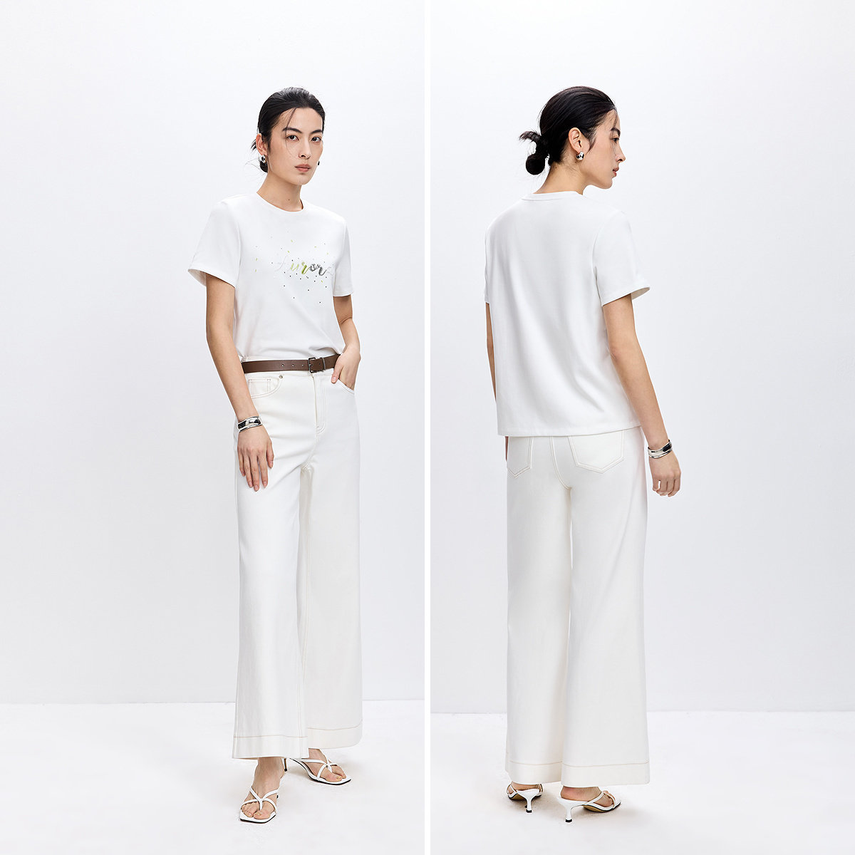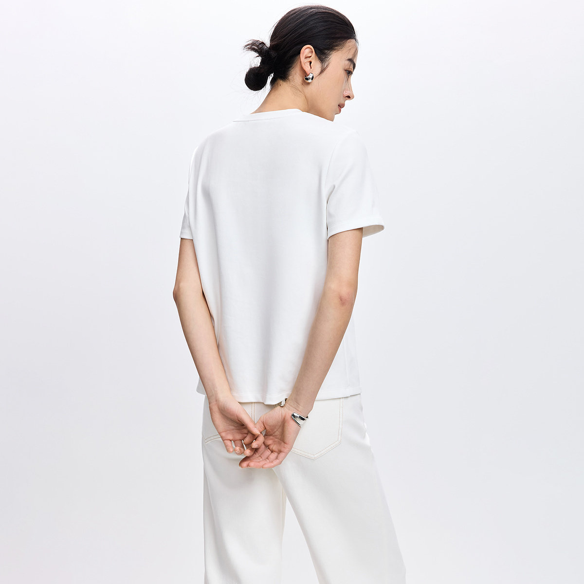 陈都灵丨凉感T森马短袖T恤女修身纯色基础夏季新款圆领白色女装