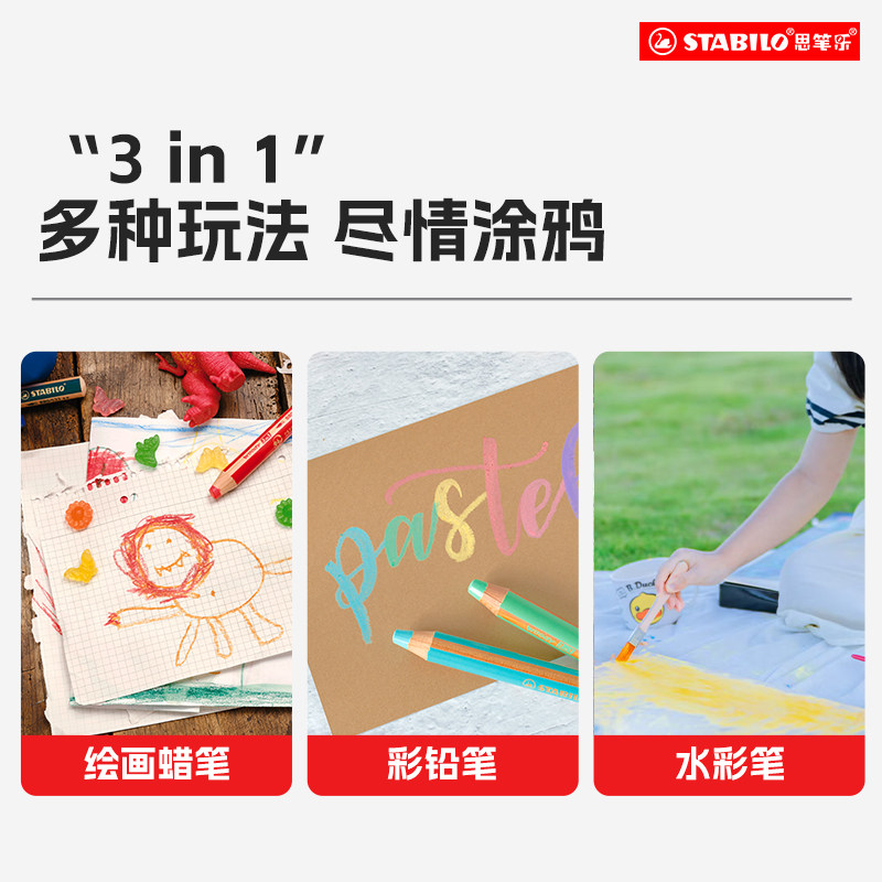 stabilo 德国思笔乐三合一伍迪乐蜡笔水溶性油画棒儿童套装幼儿园宝宝可水洗彩笔安全无毒画笔彩绘棒涂鸦笔