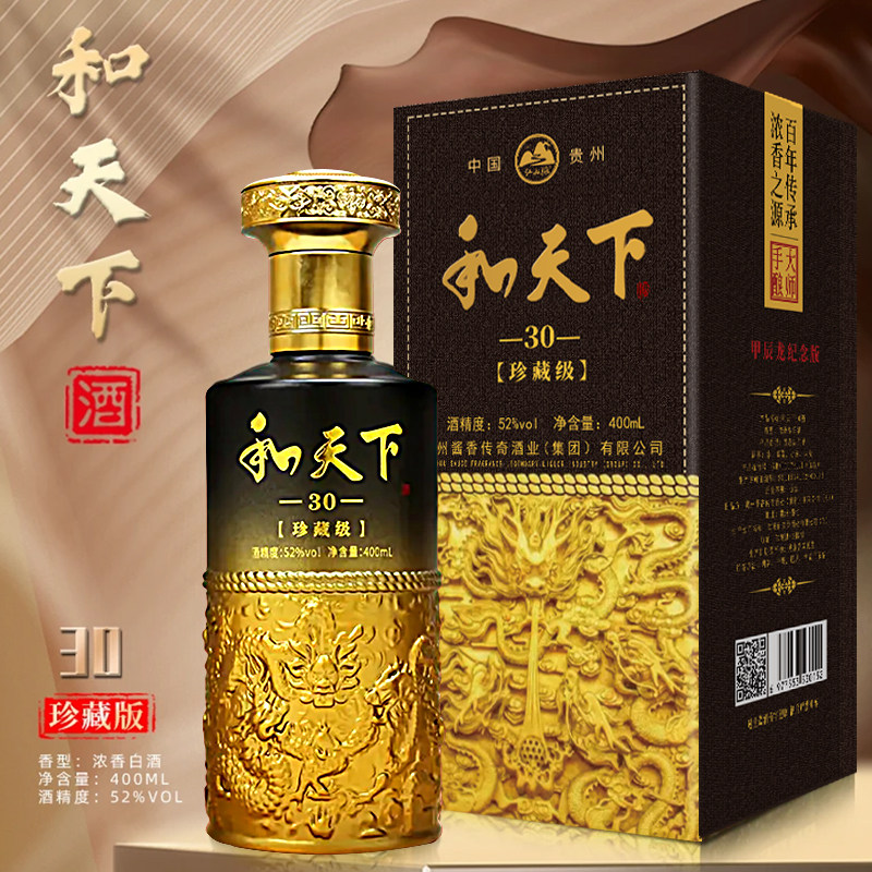 和天下浓香型52度白酒珍藏级30单瓶礼盒装粮食酿造送礼固态法特价