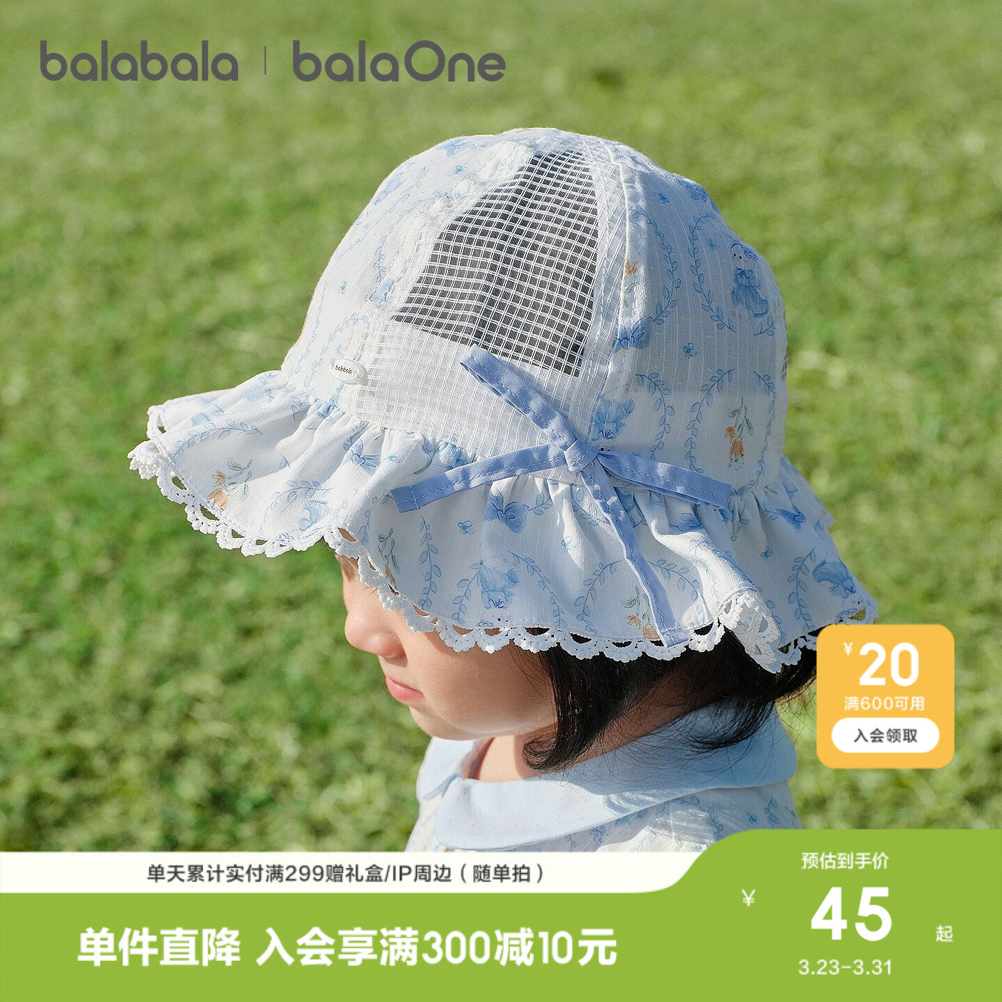 巴拉巴拉婴儿帽子女宝宝盆帽2026年新款提花精致户外舒适时尚防晒